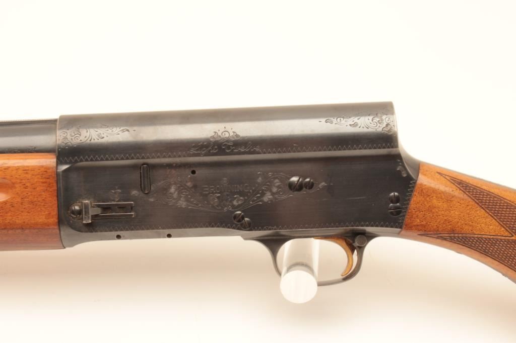 Browning Light Twelve semi automatic shotgun, #6G38207, 12 Ga, 29 1/2" vent rib barrel, checkered stock wtih recoil pad, 13 5/8" LOP. Very good plus condition with very good bore and action, 85-90% blue. (C&R / PPT) Lot Title Est. $300-600