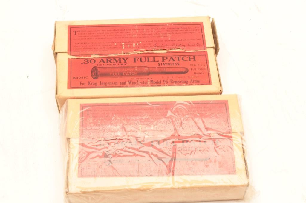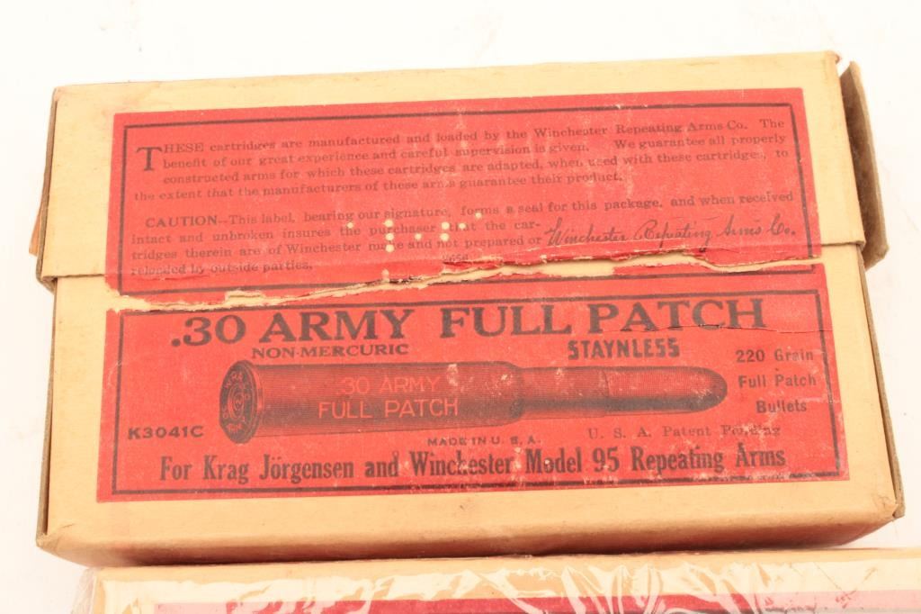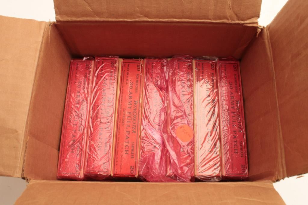 Nine boxes of Winchester .30 Army full patch cartridges. Est.: $300-$600.