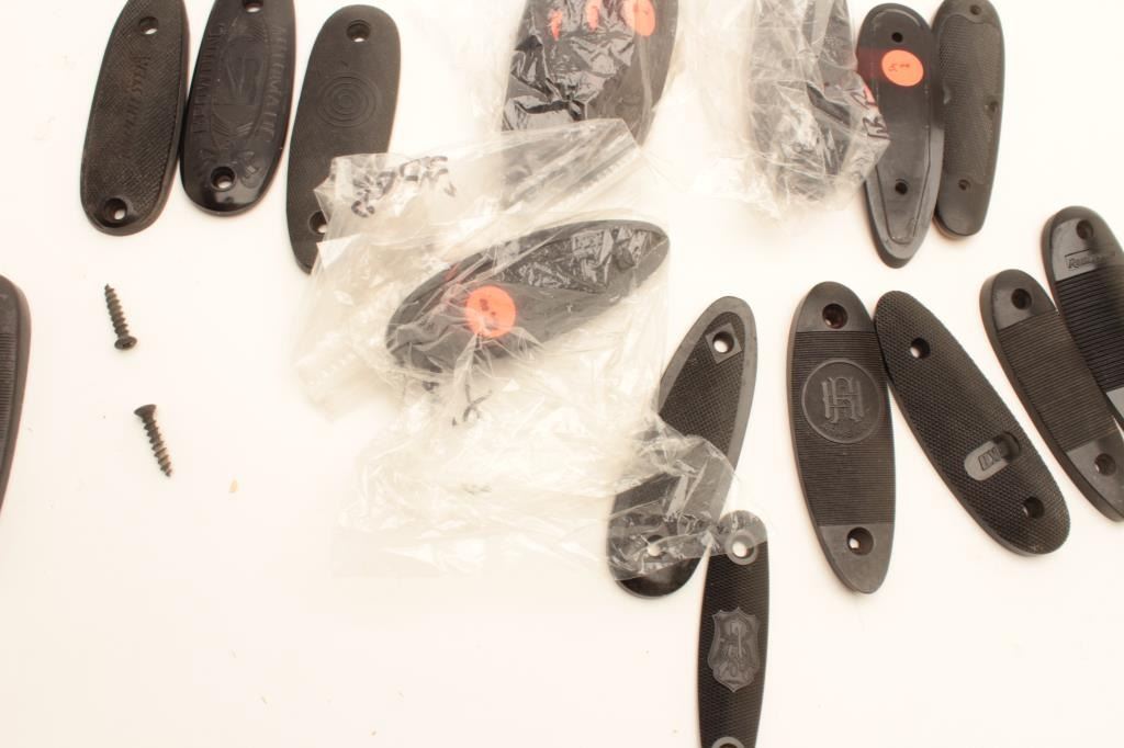 Lot of approximately 17 vintage butt plates including makers Winchester, Browning, etc. Est.: $50-$100.
