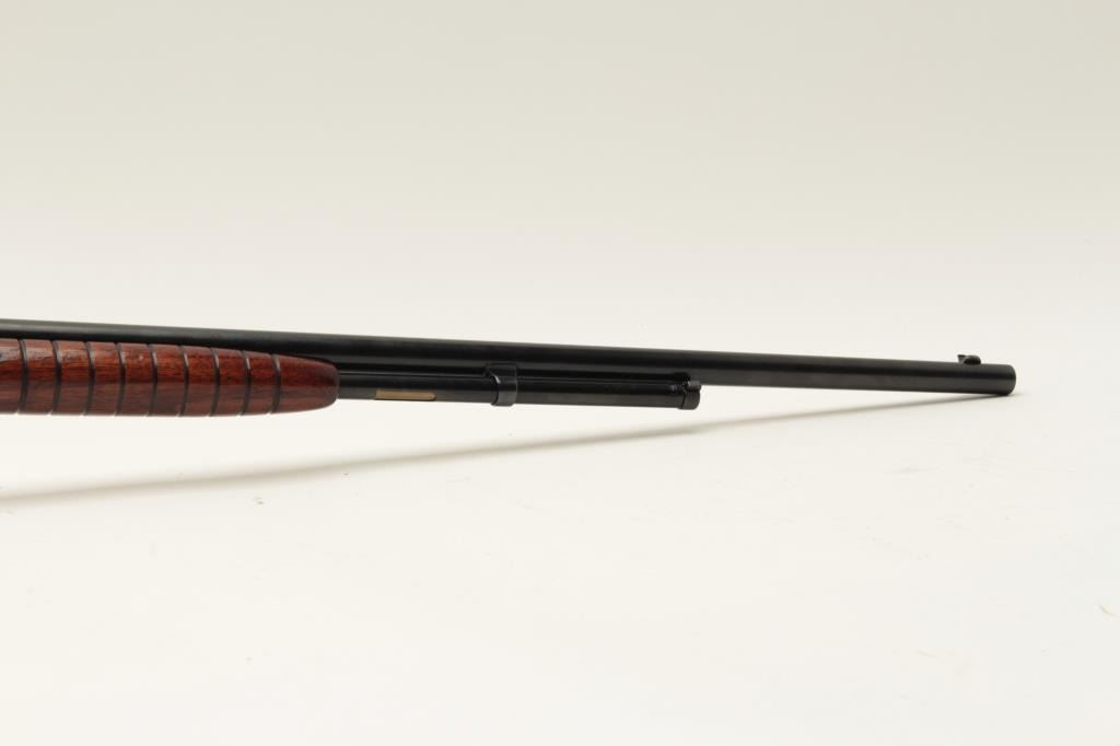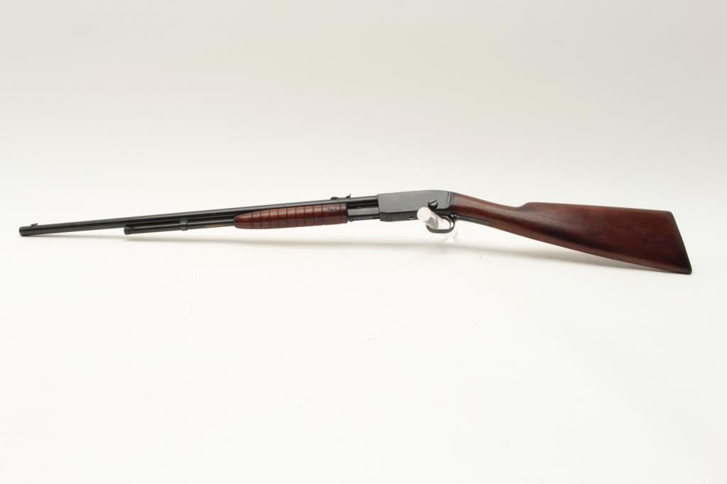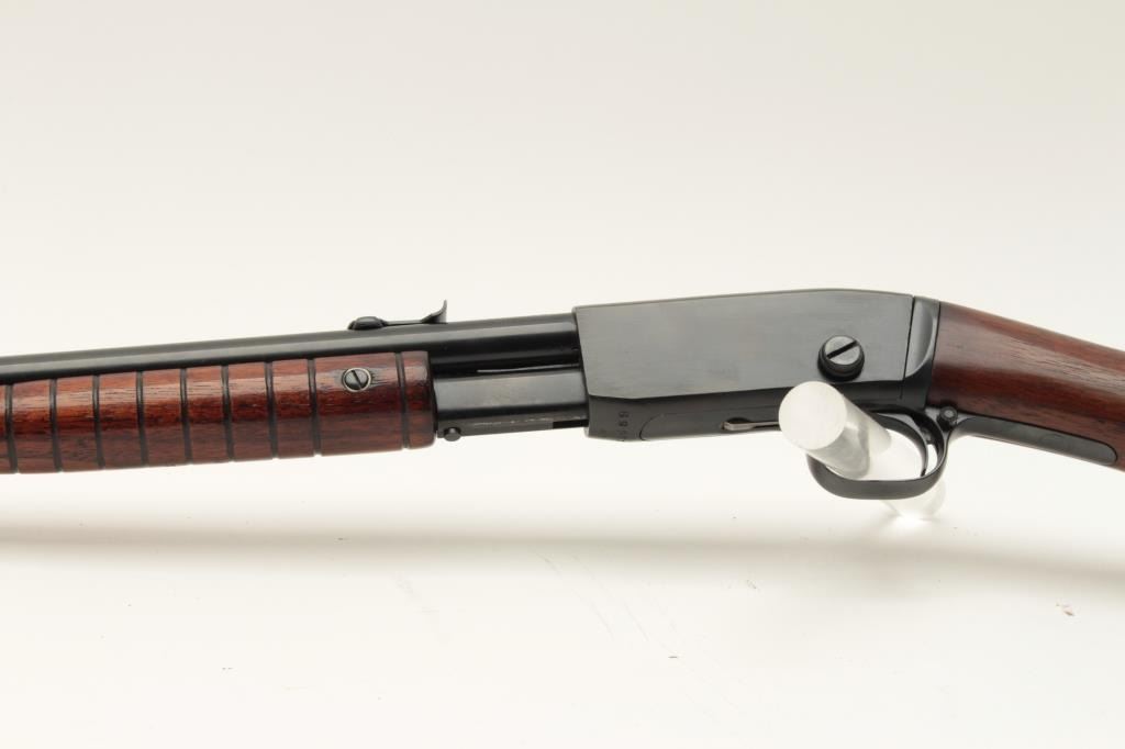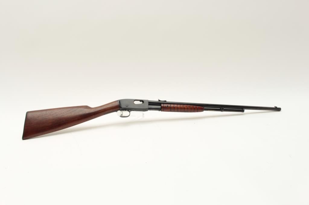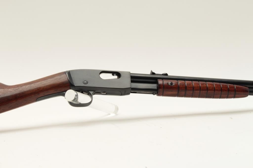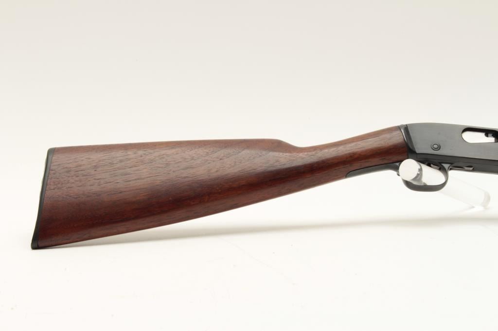 Remington pump action rifle, .22 short, long or LR caliber, 22” barrel, re-blued finish, wood stocks, S/N 211659, in overall good condition as re-finished, good bore, action, markings and wood. (C&R). Est.: Lot Title $125-$250.