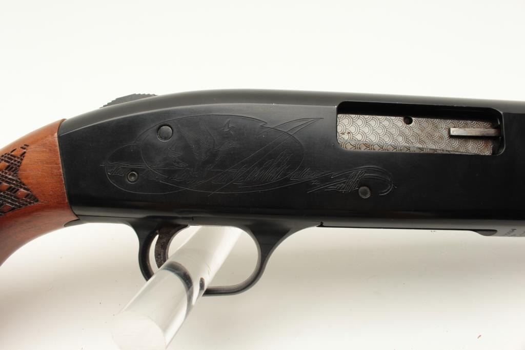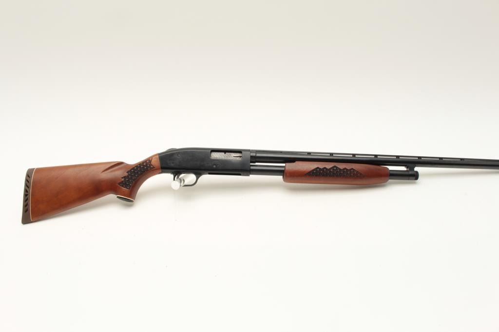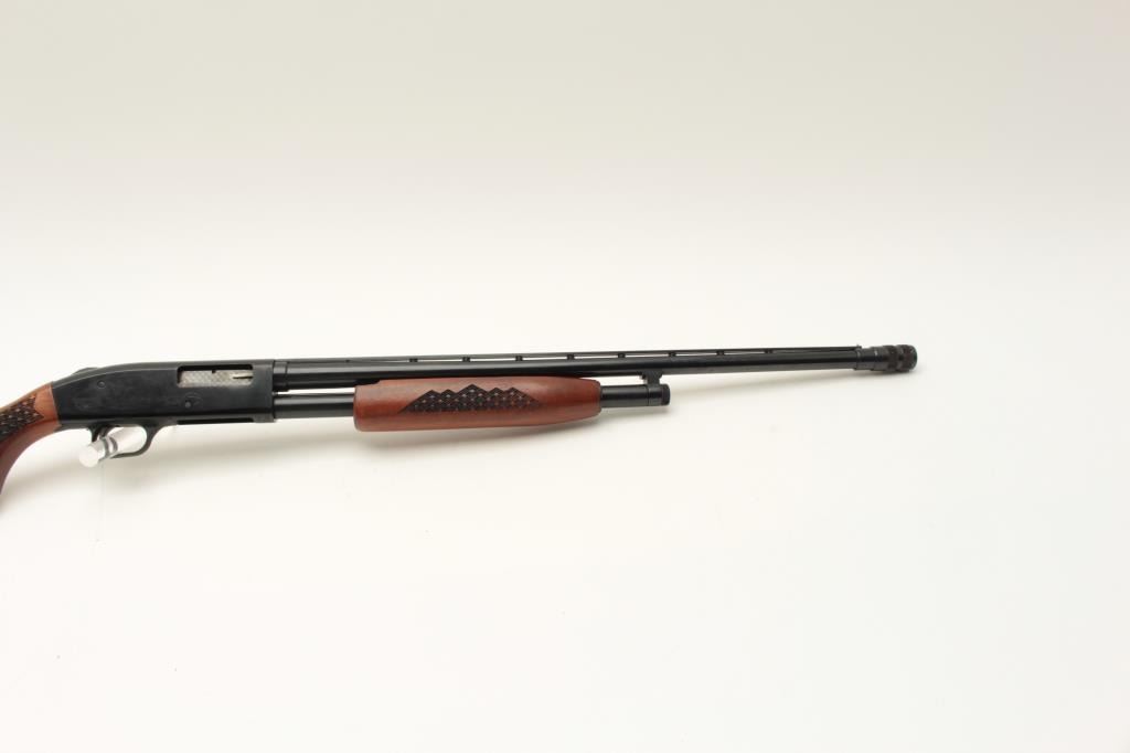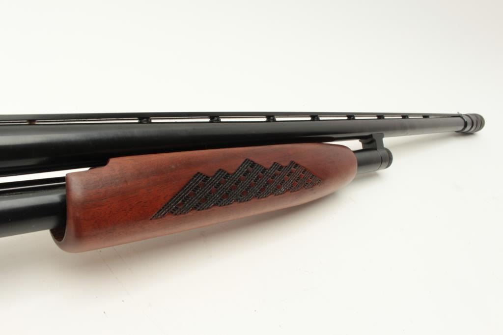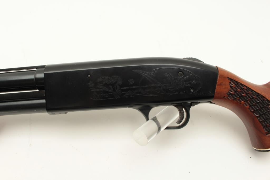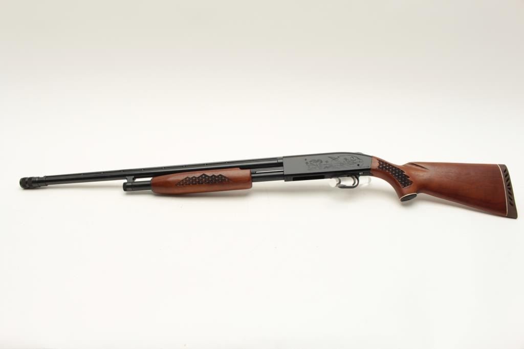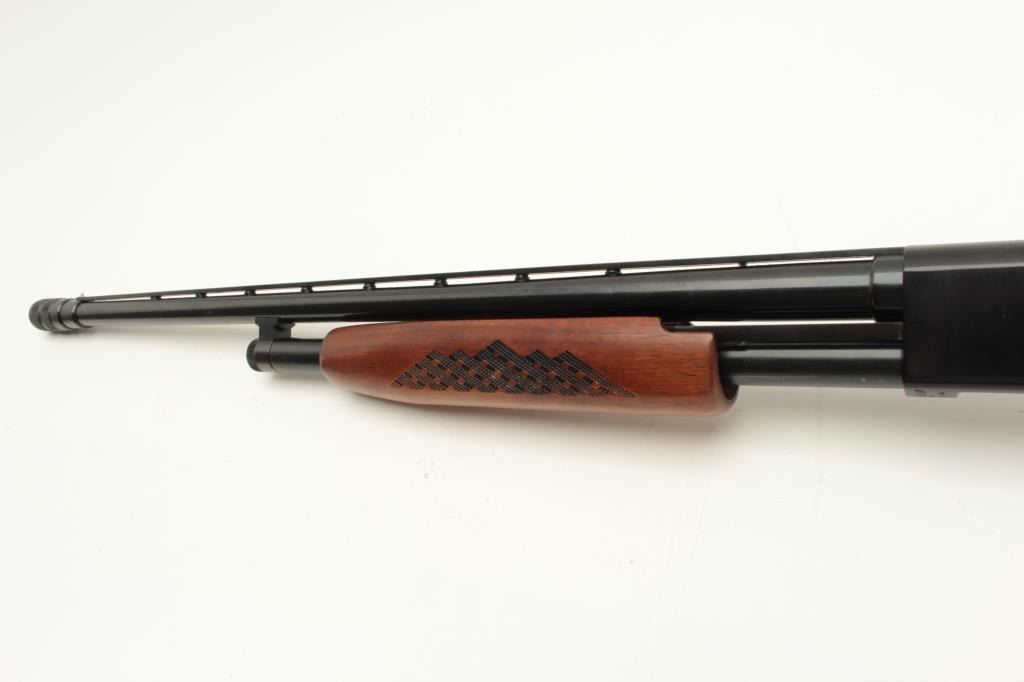 Wards Western Field pump action shotgun, 20 gauge, 26” ventilated rib barrel with variable muzzle choke, blued finish, wood stocks, S/N G096154, in overall fine condition with a fine bore, crisp action, Lot Title sharp markings and fine wood; majority of original blue remaining. (Modern). Est.: $90-$180.