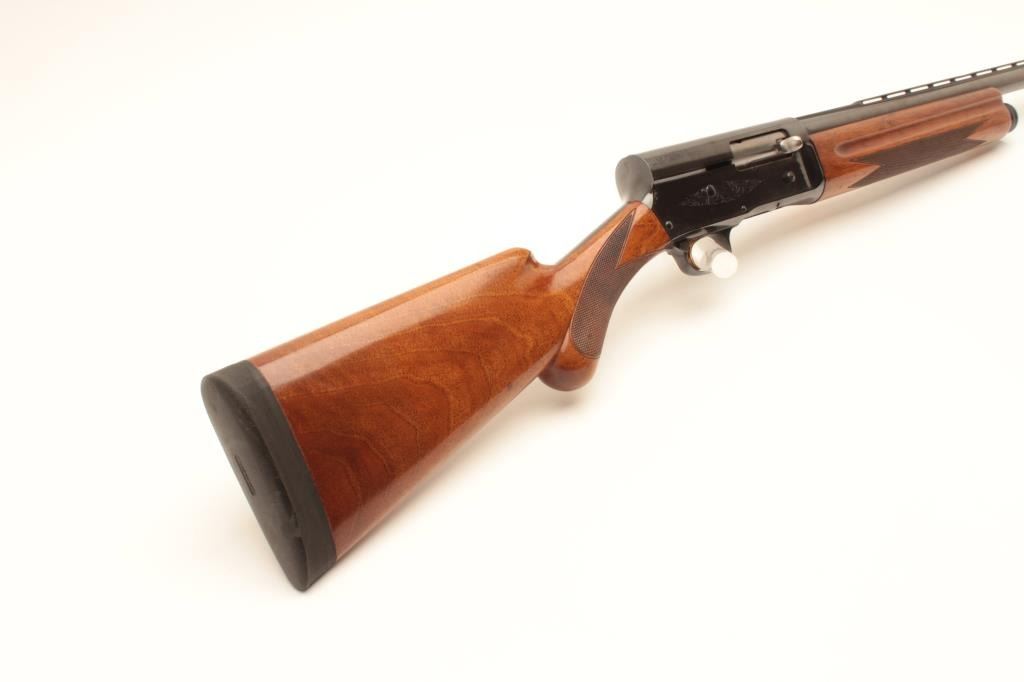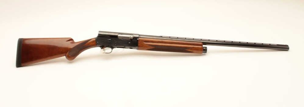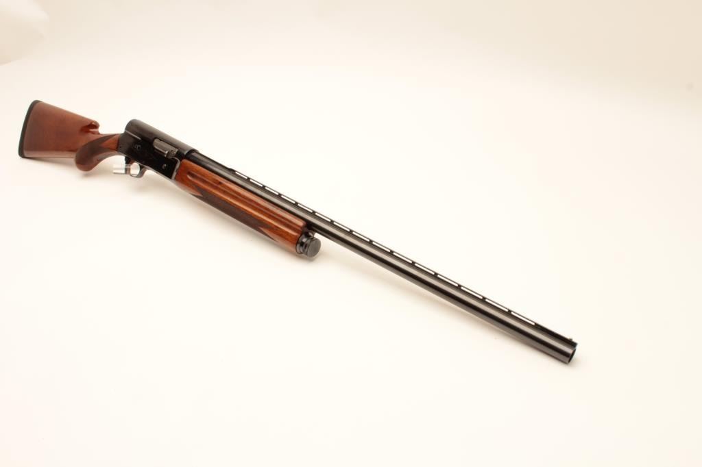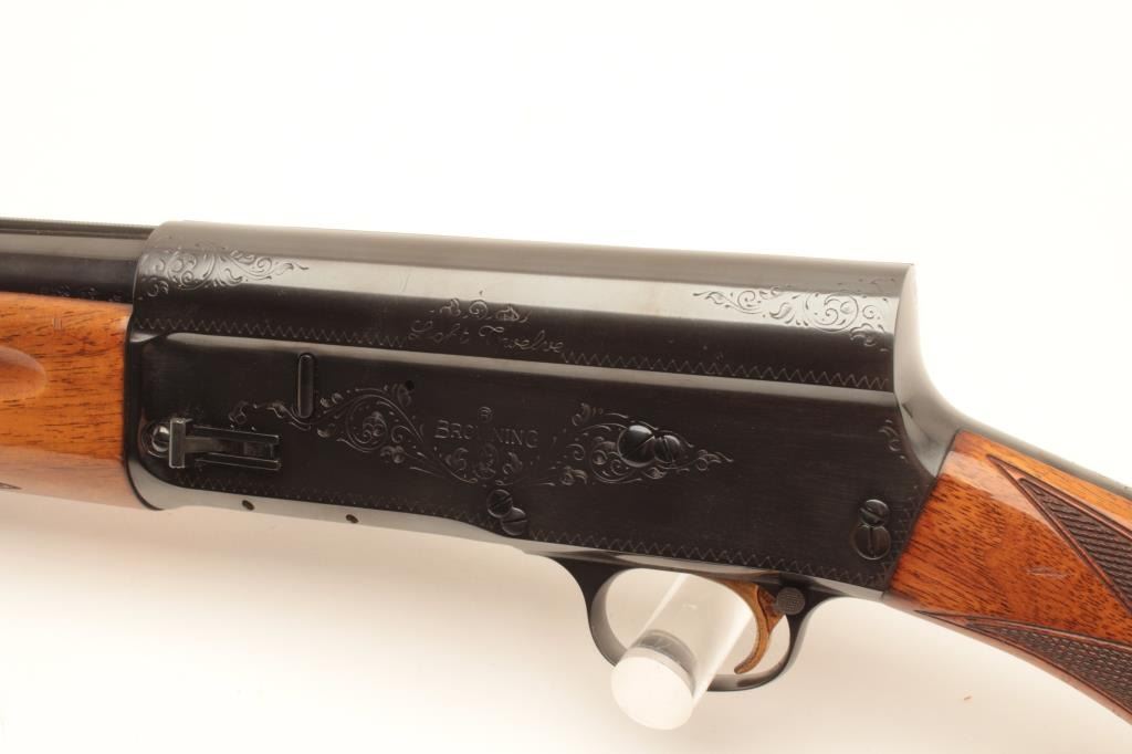 Belgian-made Browning A-5 semi-automatic shotgun, 12 gauge, 28” ventilated rib barrel, checkered wood stocks with added hard rubber butt pad, S/N 629042, very good + overall. (Modern). Est.: $350-$700.