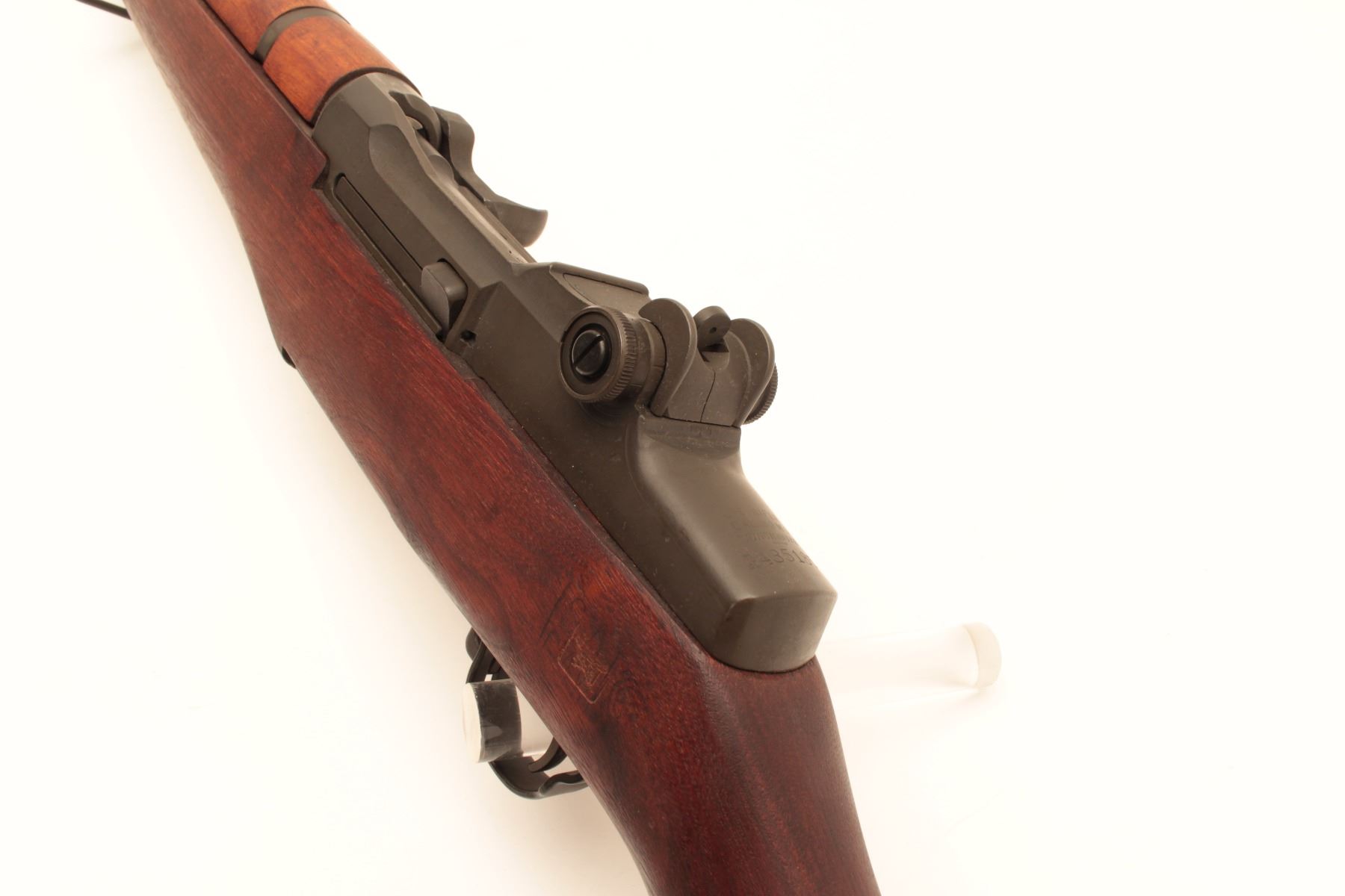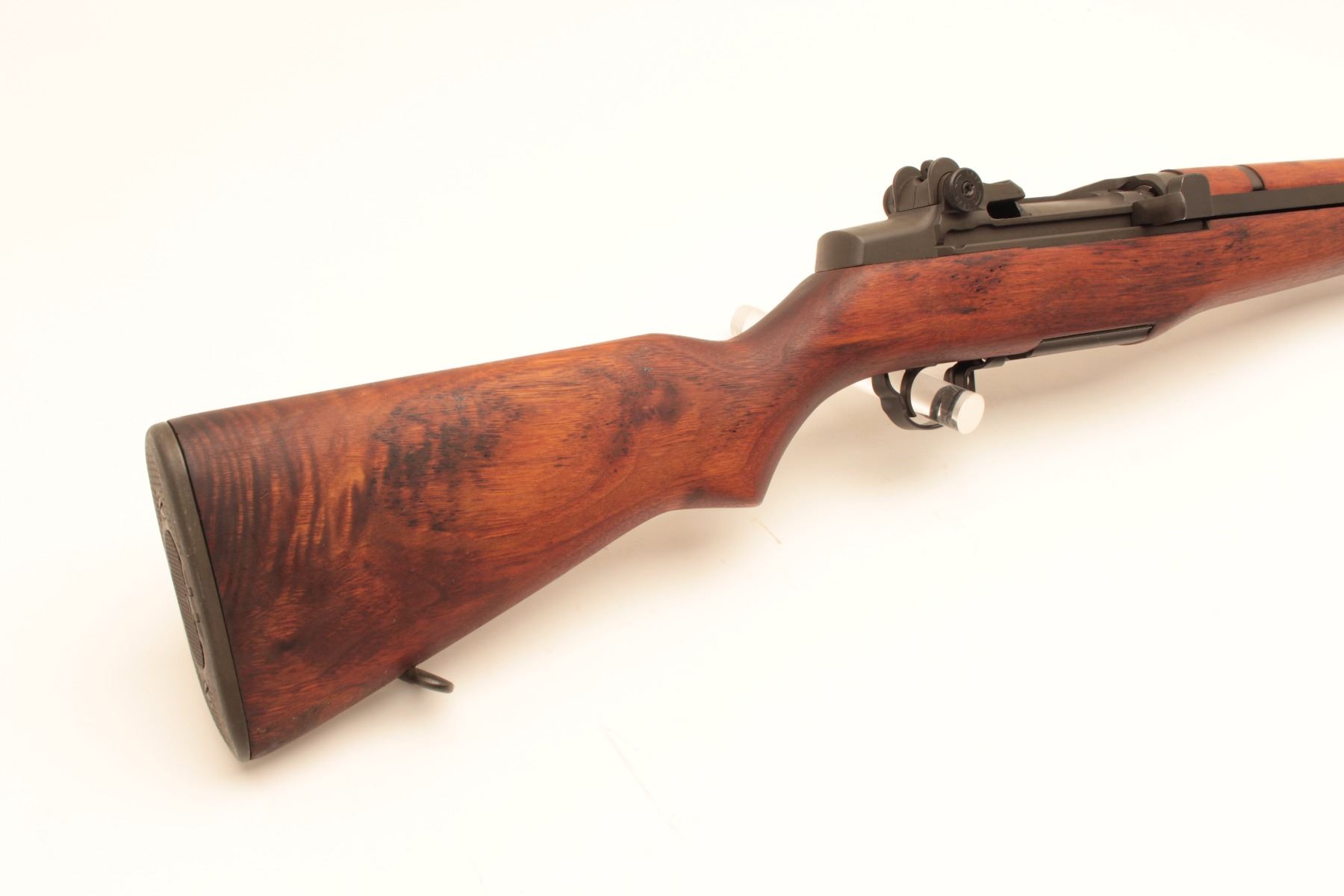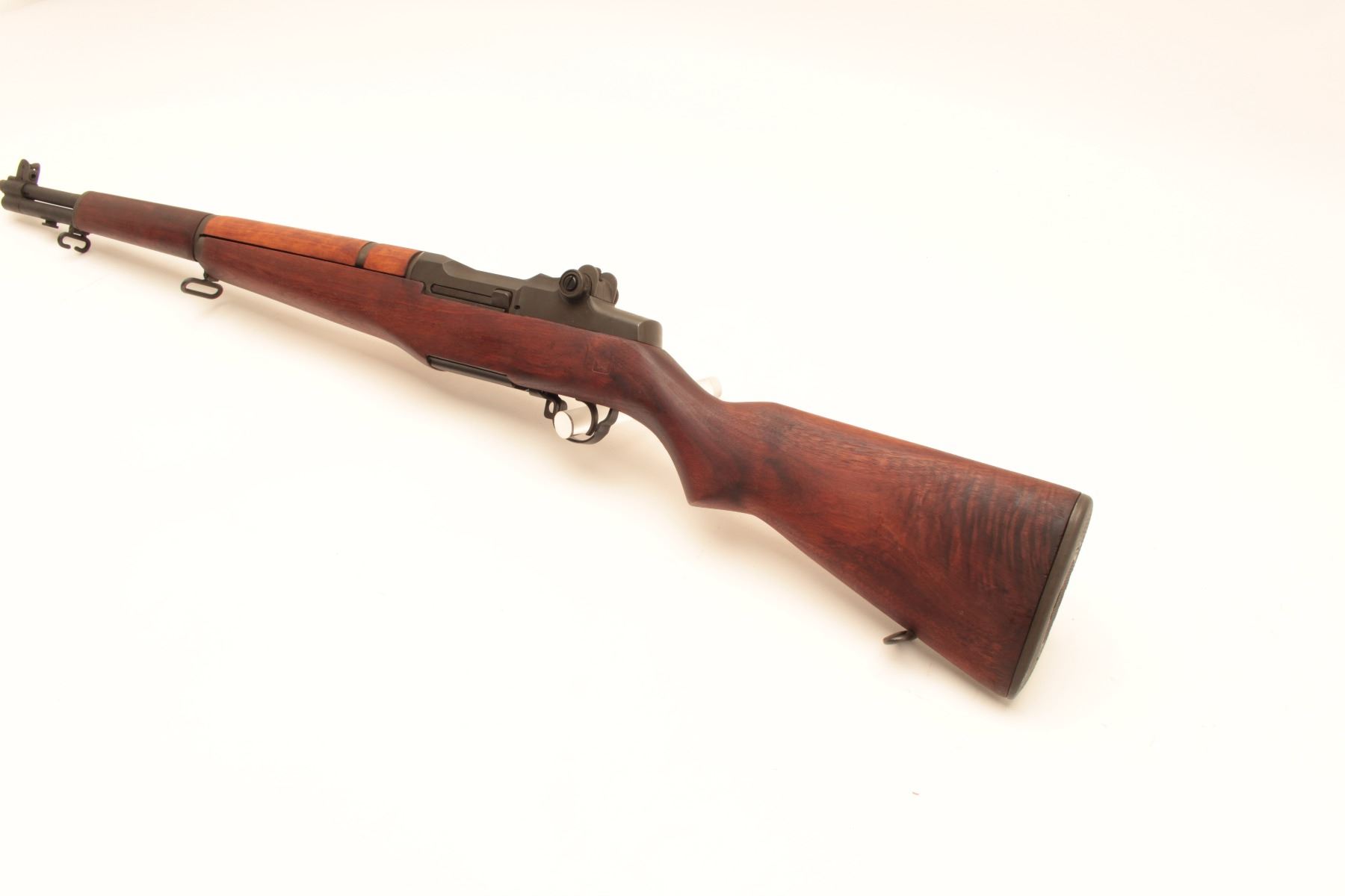 Winchester M1 Garand semi-automatic rifle, .30 caliber, Serial #2435185. The rifle is in fine overall condition as arsenal re-finished with a 24” Springfield marked barrel dated 10-65. The metal parts retain Lot Title nearly all of their military finish with only light handling marks. The smooth wood stock is in fine condition with sharp cartouches at the rear of the action and behind the trigger guard. The butt stock ends with a Lot Title checkered steel butt plate with trap. The bore is good, the action is crisp and markings are sharp on this nice Winchester Garand. Est.: $800-$1,600. (C+R).