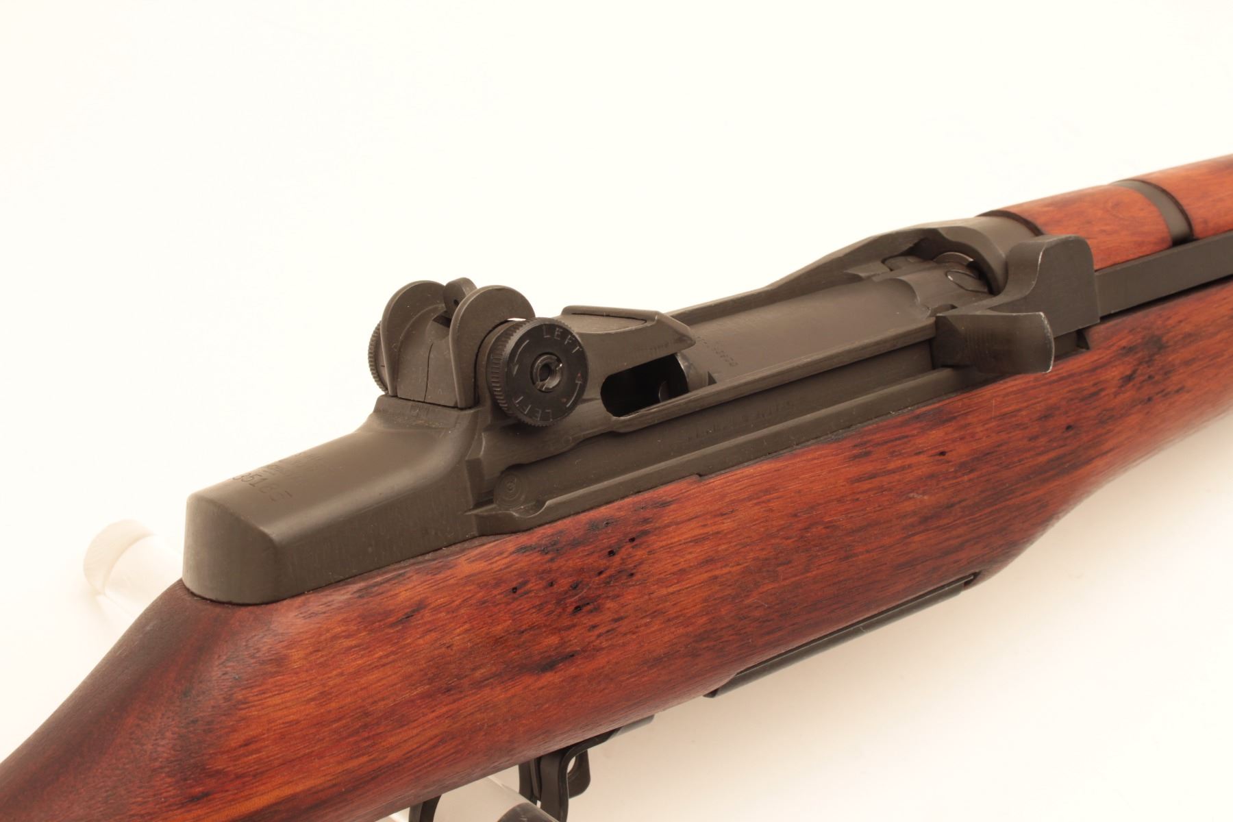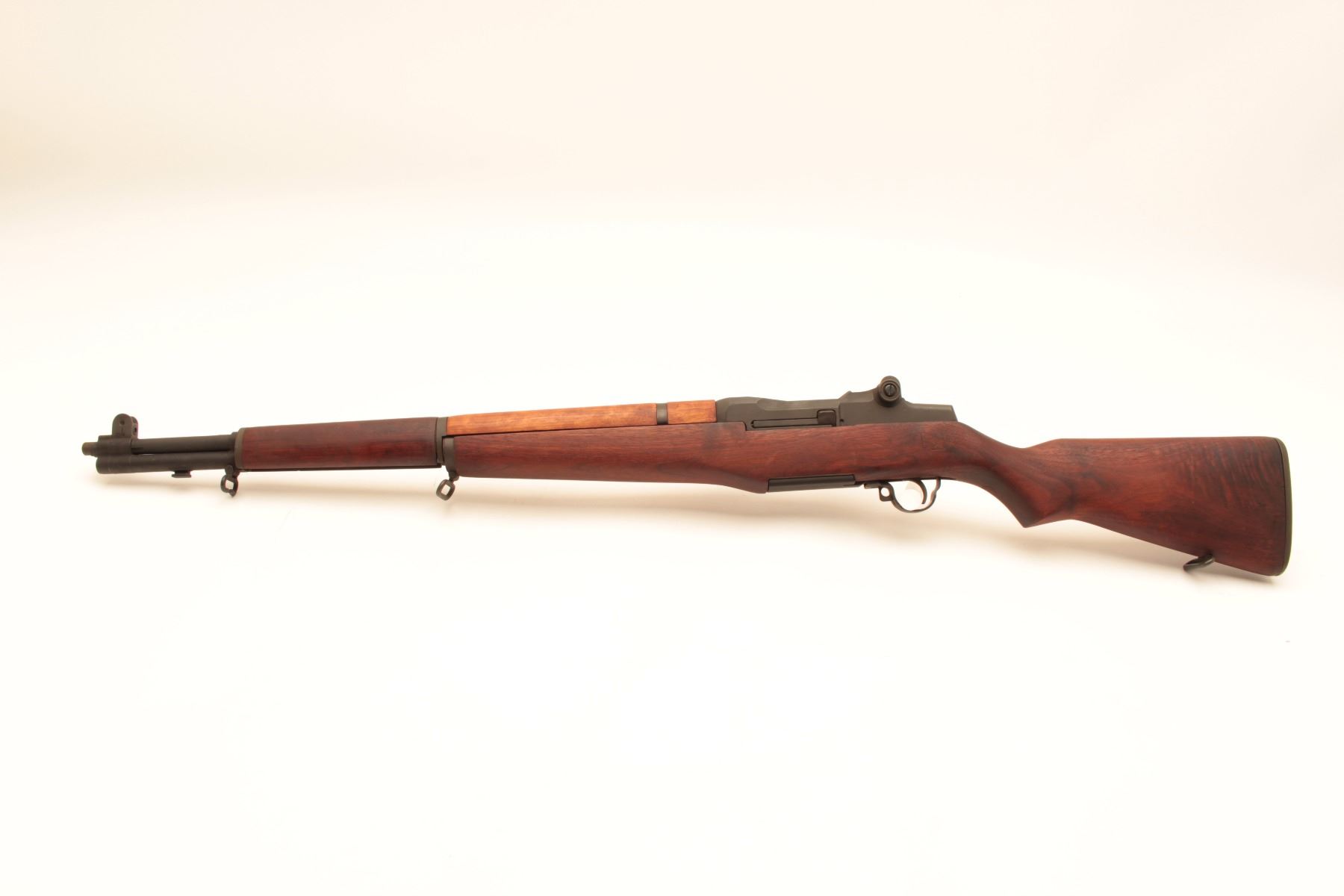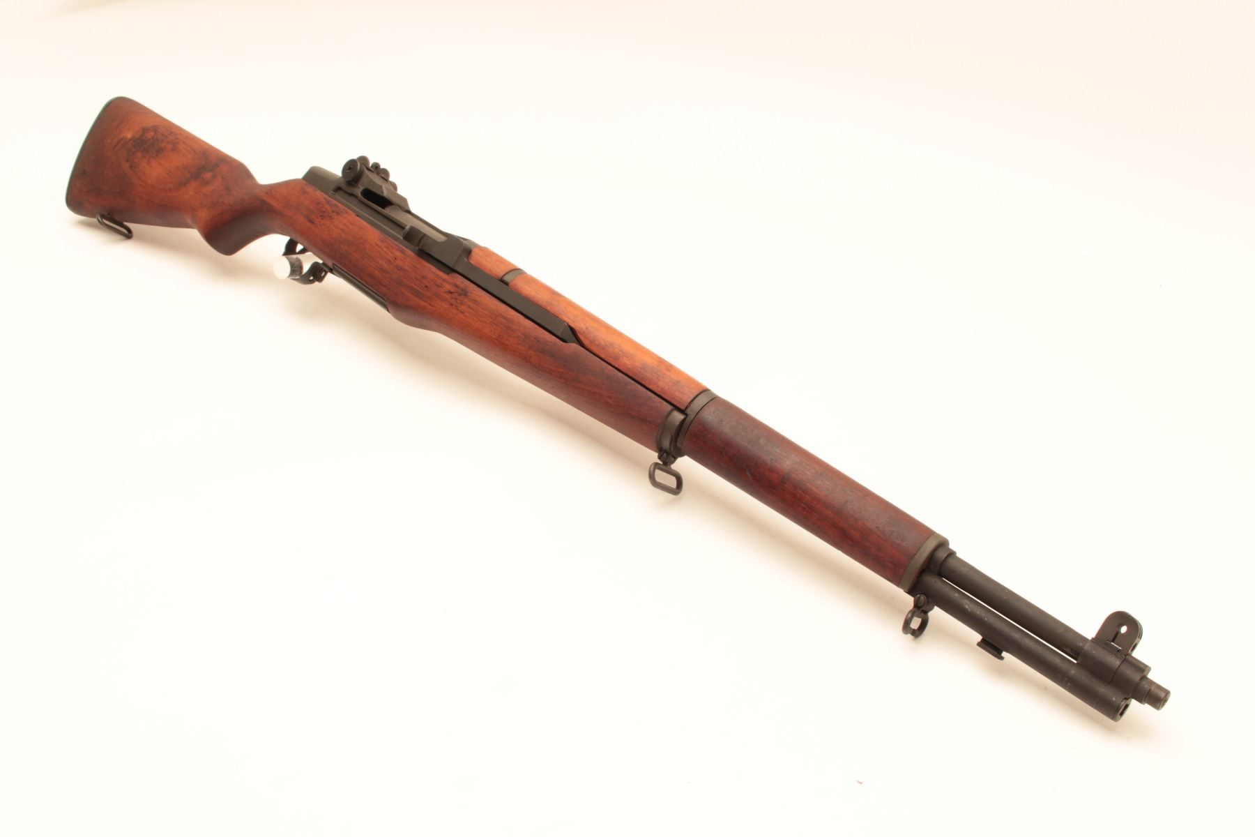 Winchester M1 Garand semi-automatic rifle, .30 caliber, Serial #2435185. The rifle is in fine overall condition as arsenal re-finished with a 24” Springfield marked barrel dated 10-65. The metal parts retain Lot Title nearly all of their military finish with only light handling marks. The smooth wood stock is in fine condition with sharp cartouches at the rear of the action and behind the trigger guard. The butt stock ends with a Lot Title checkered steel butt plate with trap. The bore is good, the action is crisp and markings are sharp on this nice Winchester Garand. Est.: $800-$1,600. (C+R).