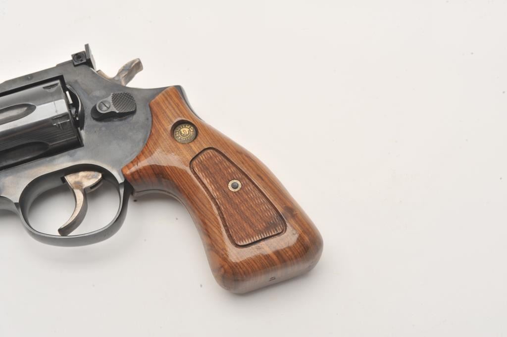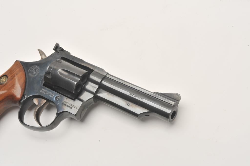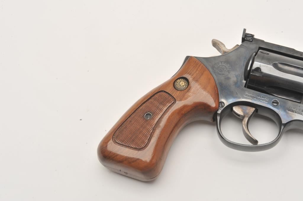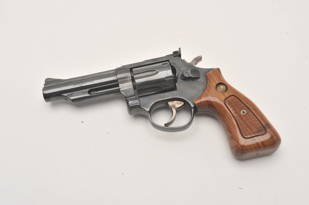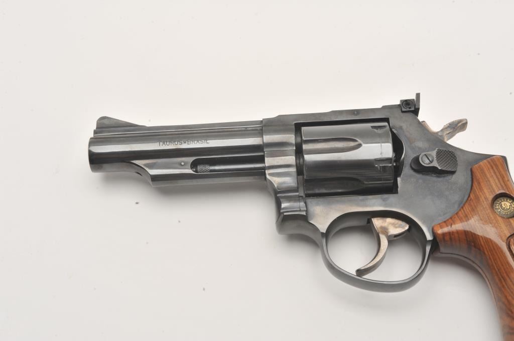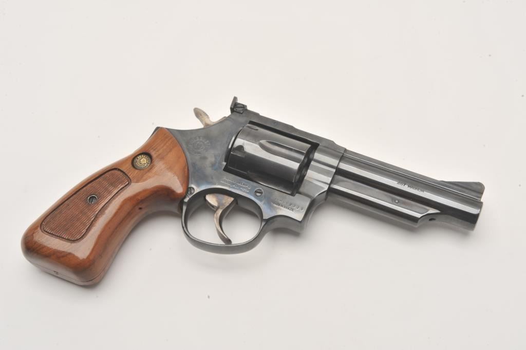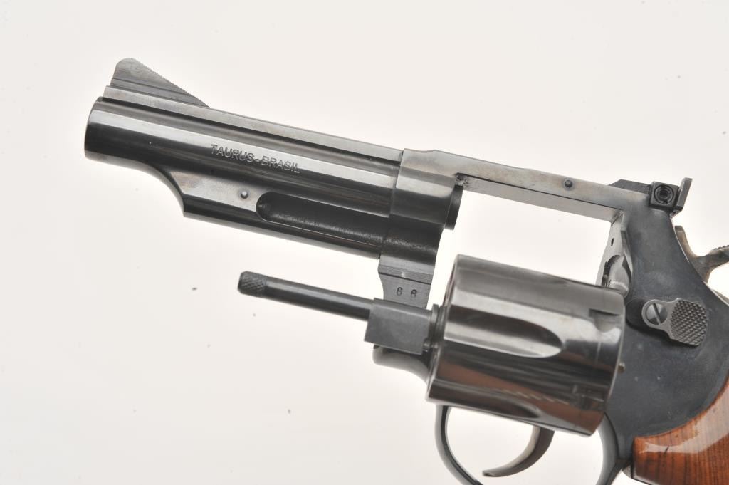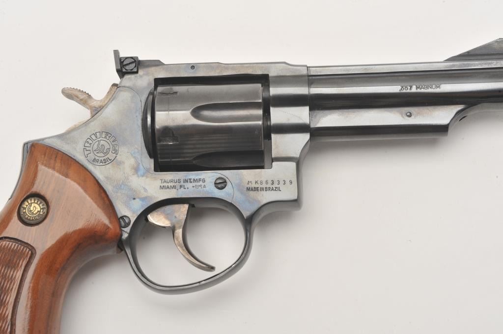 Taurus DA revolver, .357 Magnum caliber, 4” barrel, blued finish, checkered wood medallion grips, S/N MK863339, in overall fine condition with a fine bore, action, markings and grips. (Modern/PPT). Lot Title Est.: $200-$400.