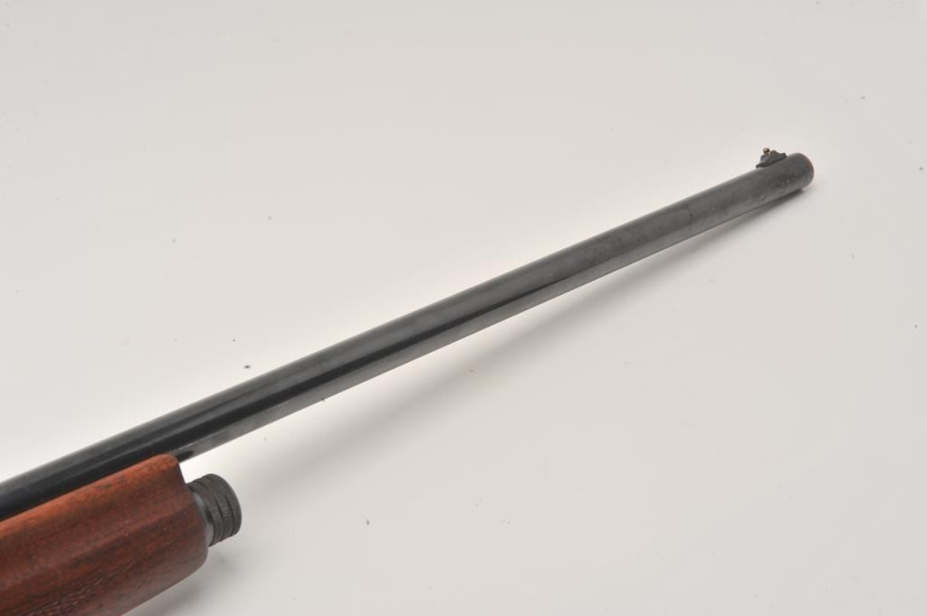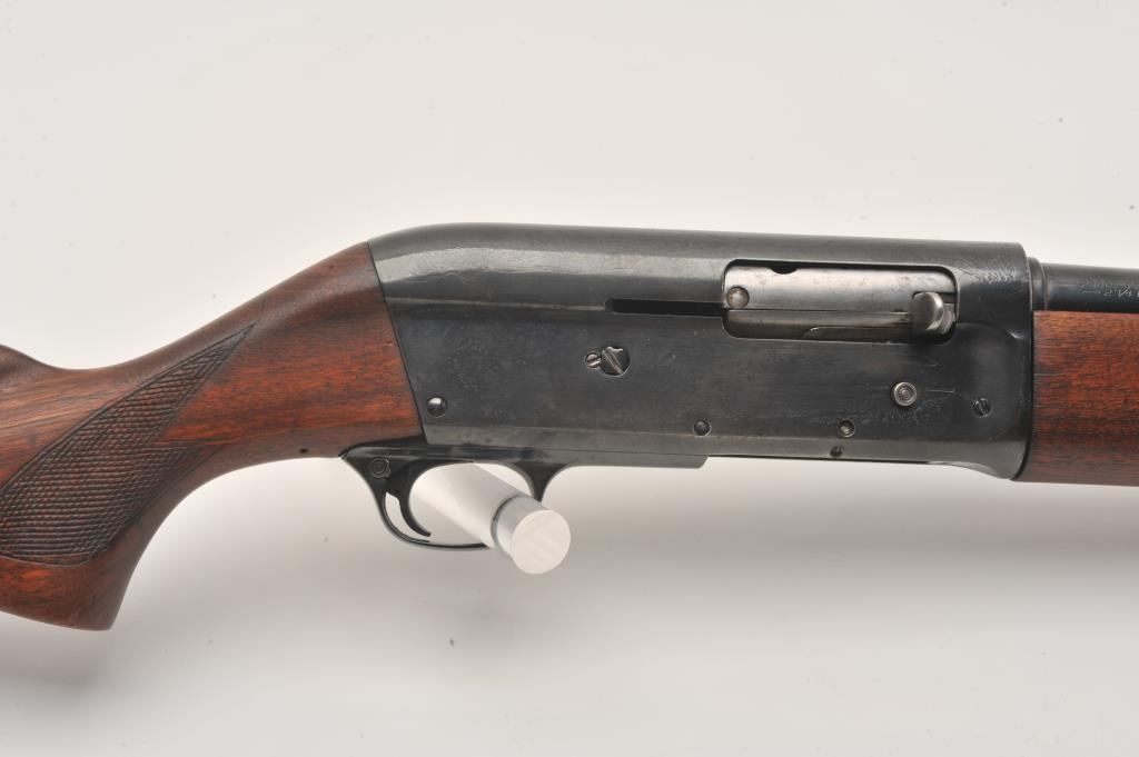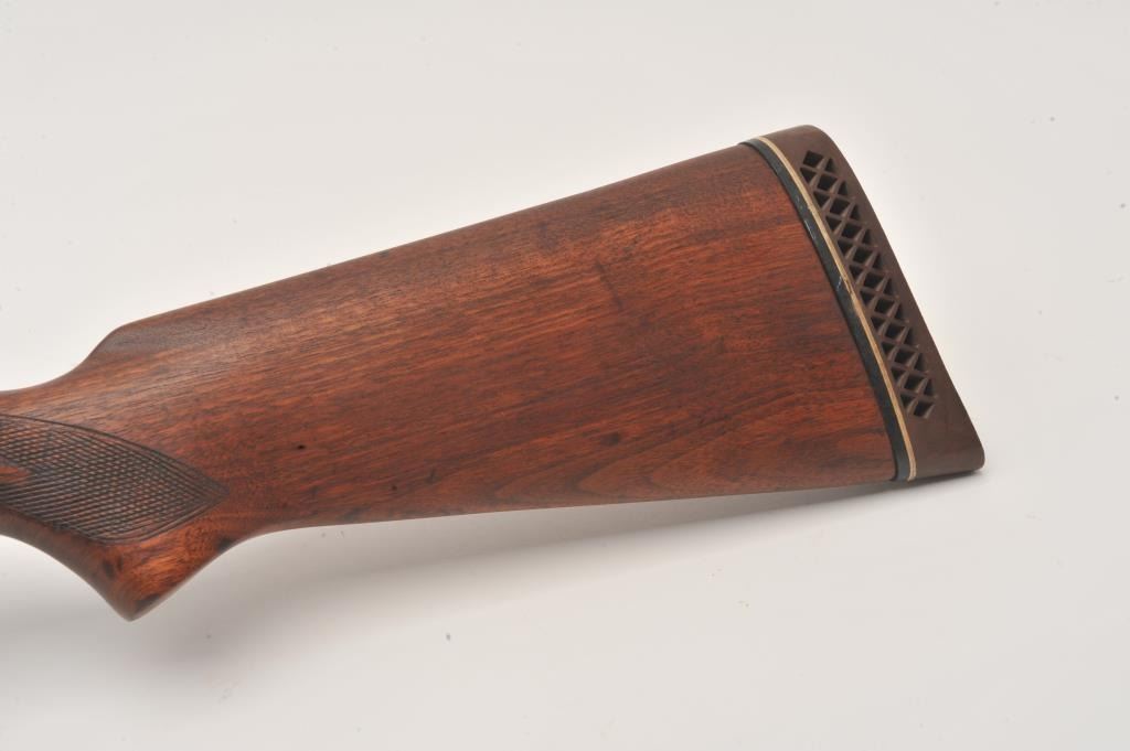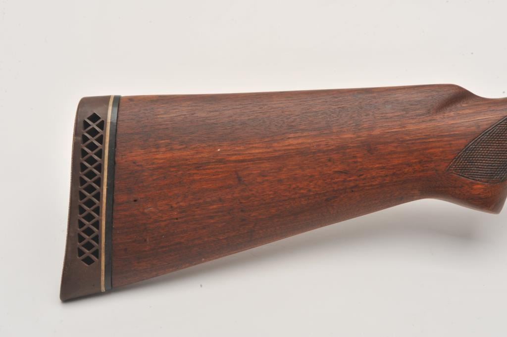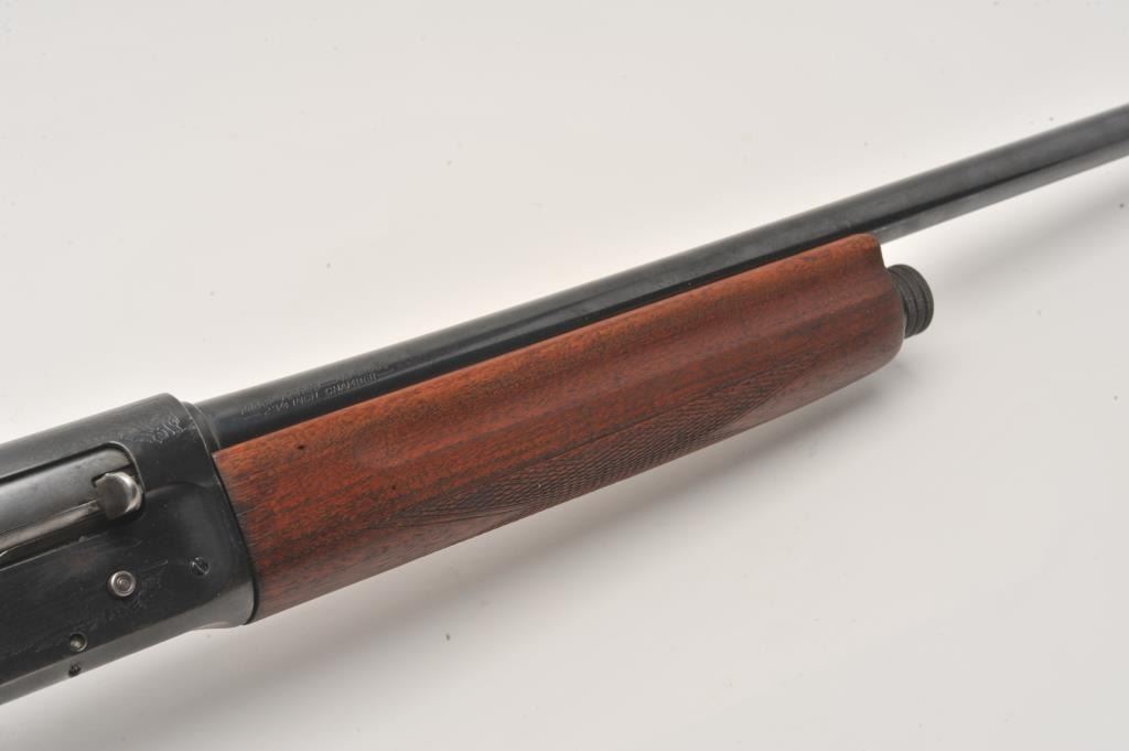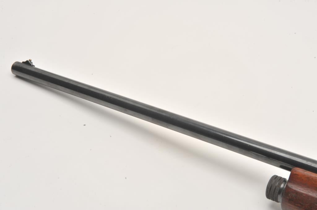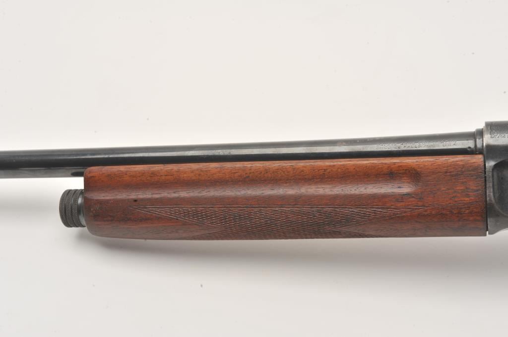 Savage Model 755A semi-auto shotgun, 16 Gauge, Serial #563305. The shotgun is in good overall condition with a 28” barrel with a brass bead front sight. The barrel and receiver retain the majority of their Lot Title thinning blue finish with mars and scratches from use. The checkered wood stocks are in good condition with mars and compressions consistent with field use. The butt ends with a ventilated rubber pad providing a 14 Lot Title ¾” LOP. The bore is good, the action functions and markings are legible. Est.: $125-$250. (Modern).