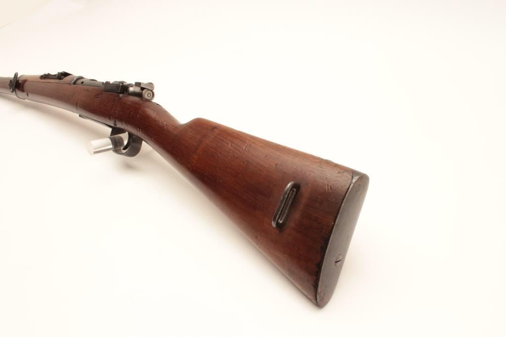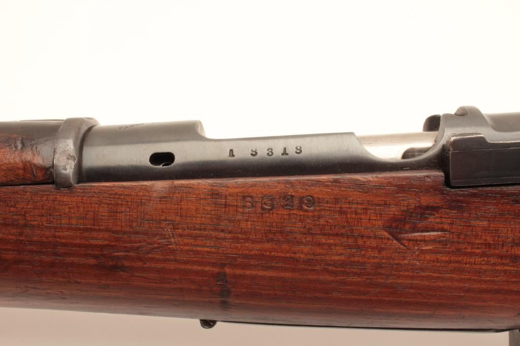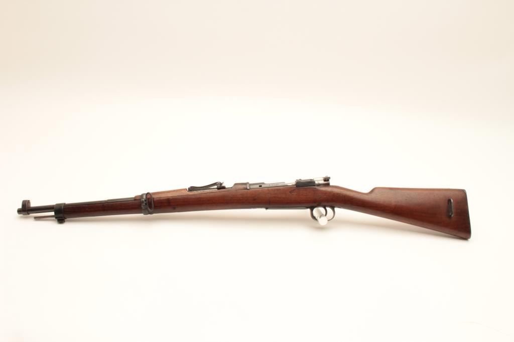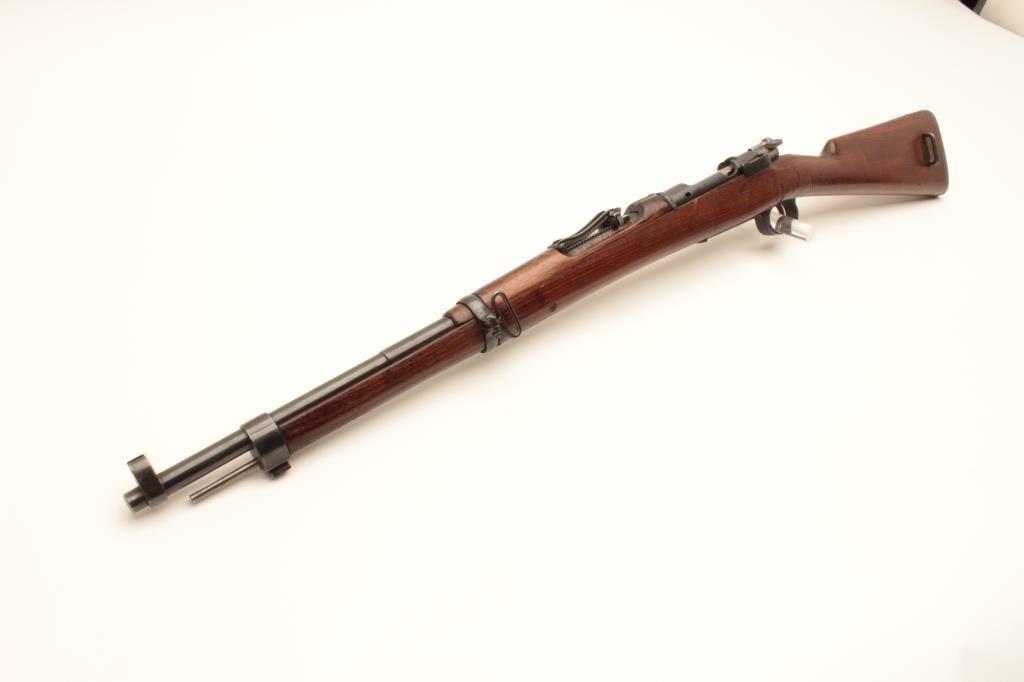 Spanish Mauser bolt action rifle, dated 1923, 22” barrel, re-blued finish, wood stock, S/N 18318, in overall good condition with a good bore, crisp action, good wood stock. (C&R). Est.: $75-$150.
