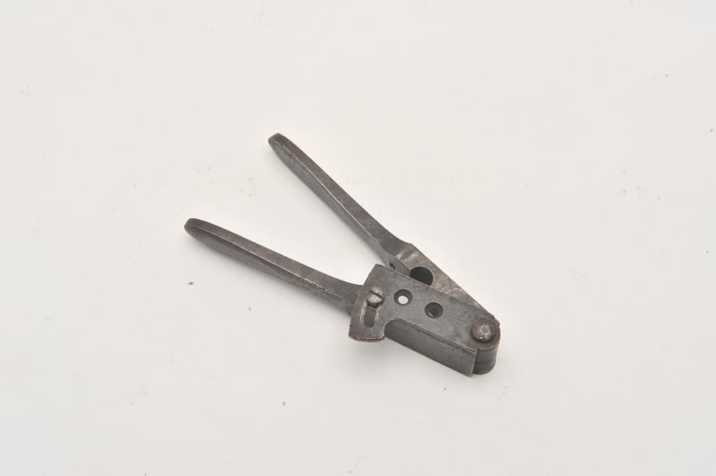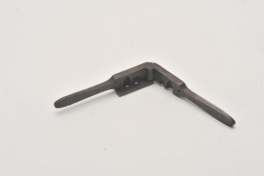 “.36 B” marked iron mold for Colt Navy. Traces of blue in brown patina. Some rust and pitting. Good markings and good cavities. May clean to very good. Many large dings. Est.: $100-$200