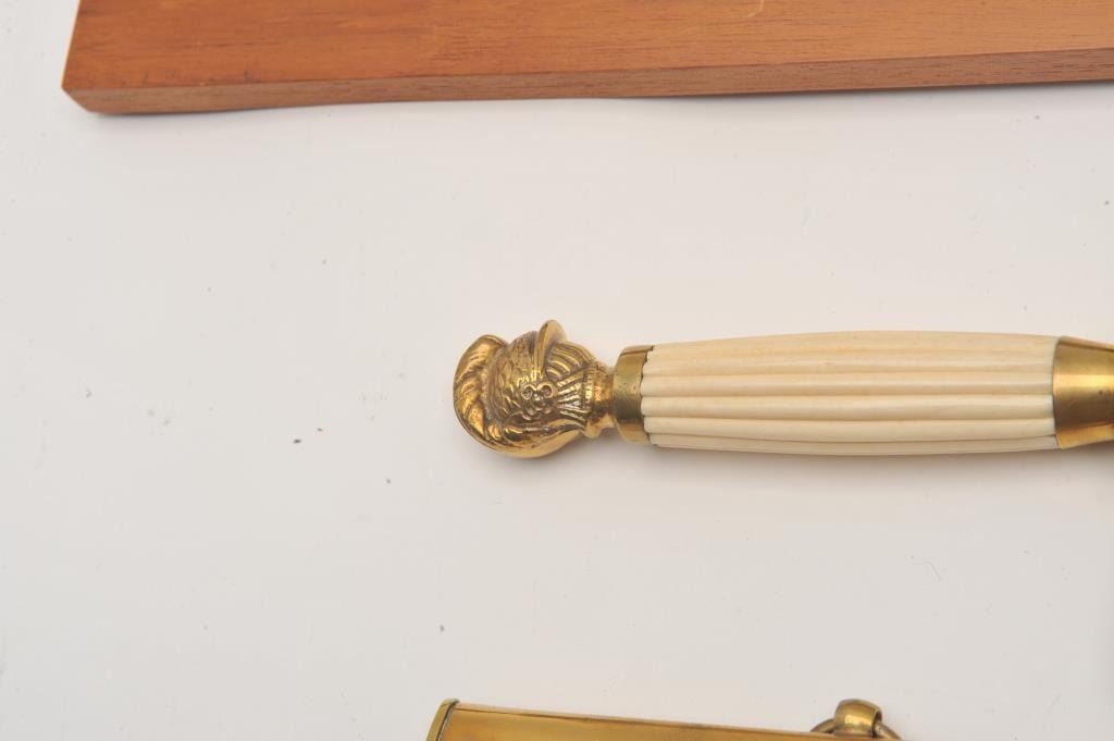 Pre-Civil War U.S. Militia Officer’s sword with Roman helmet pommel and fluted bore grip. Brass scabbard and mounts. Polished and cleaned too vigorously. Est.: $150-$300