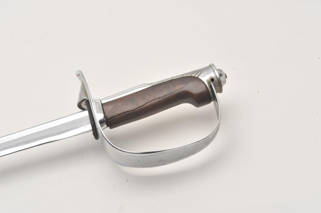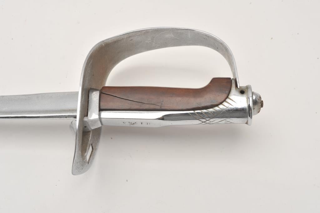 Unidentified post WWI nickel plated Cavalry sabre. Consignor believed experimental U.S. post Patton sabre. No scabbard and good as refinished. Est.: $75-$150