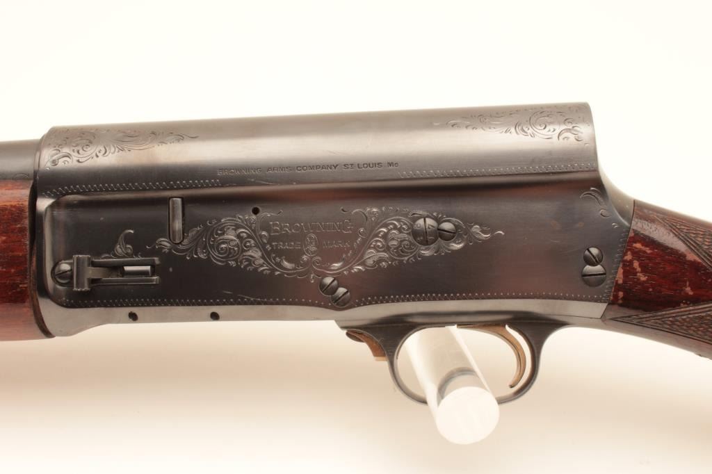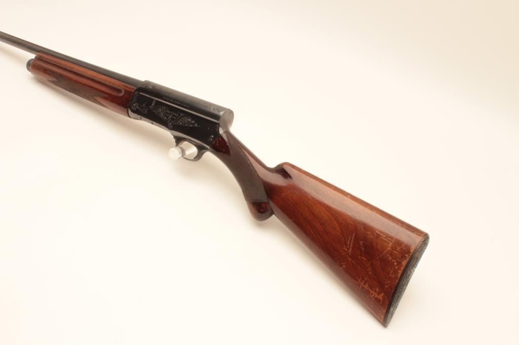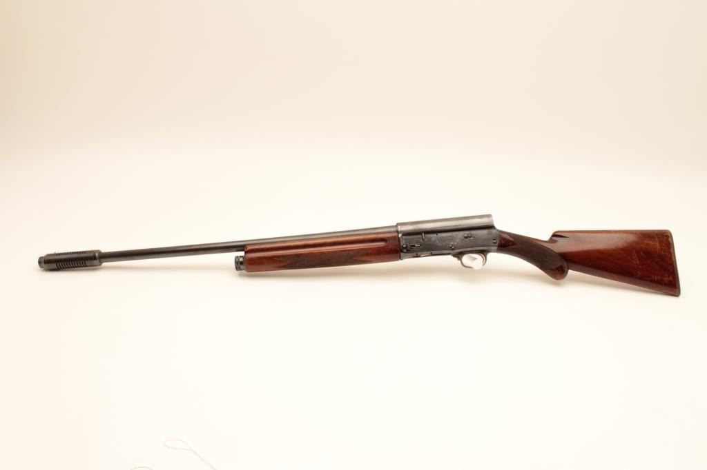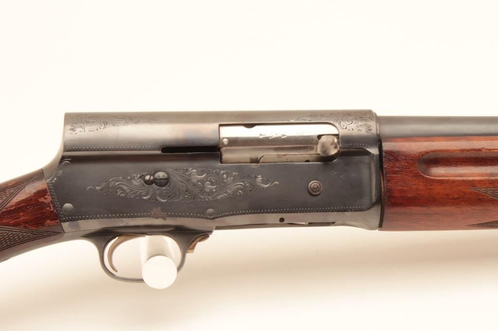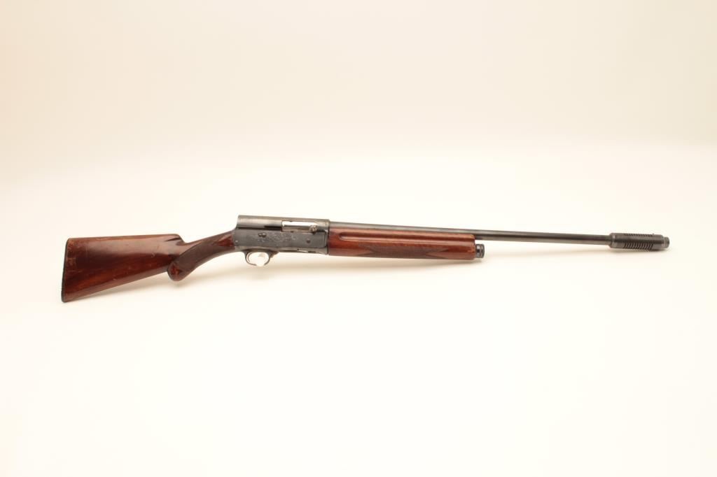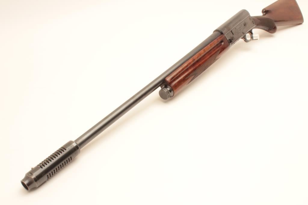 Browning Auto 5 semi auto shotgun, #258807, 12 Ga., 27 1/2" barrel with Cutts compensator, 14 3/8" LOP. Very good to near fine condition, some minor pin prick corrosion starting on the receiver, 90-95% Lot Title blue, good bore and action. (C&R / PPT) Est. $250-500