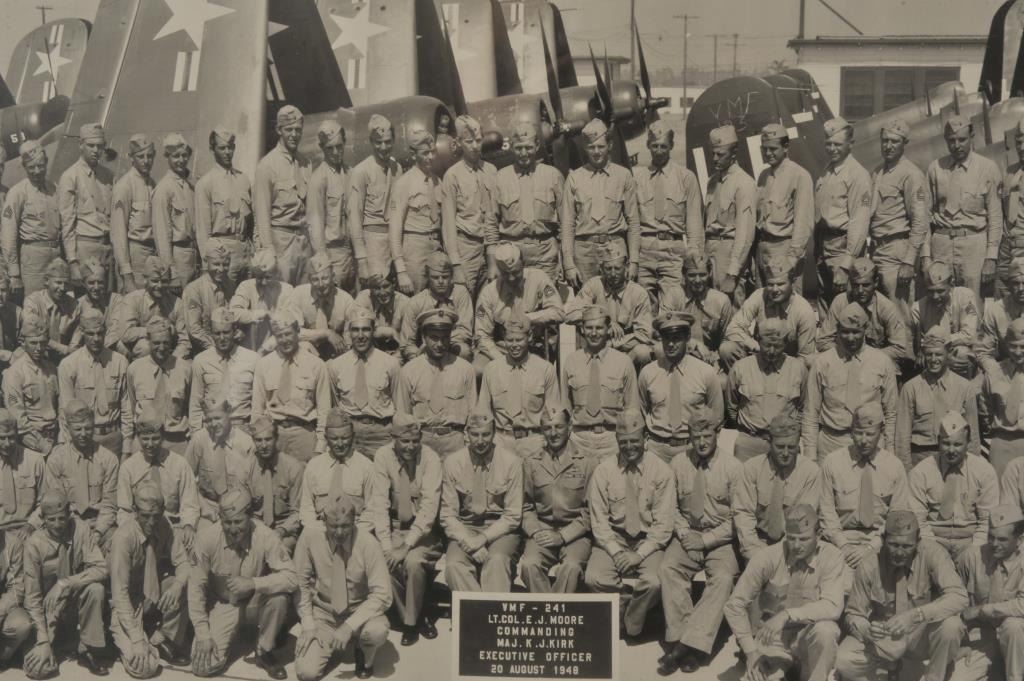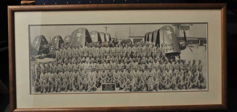 Panoramic photo of VMF 21, 1948. F 4 U Corsair fighters with pilots and crew. Measures 8 ¾” x 23”. Est.: $200-$400