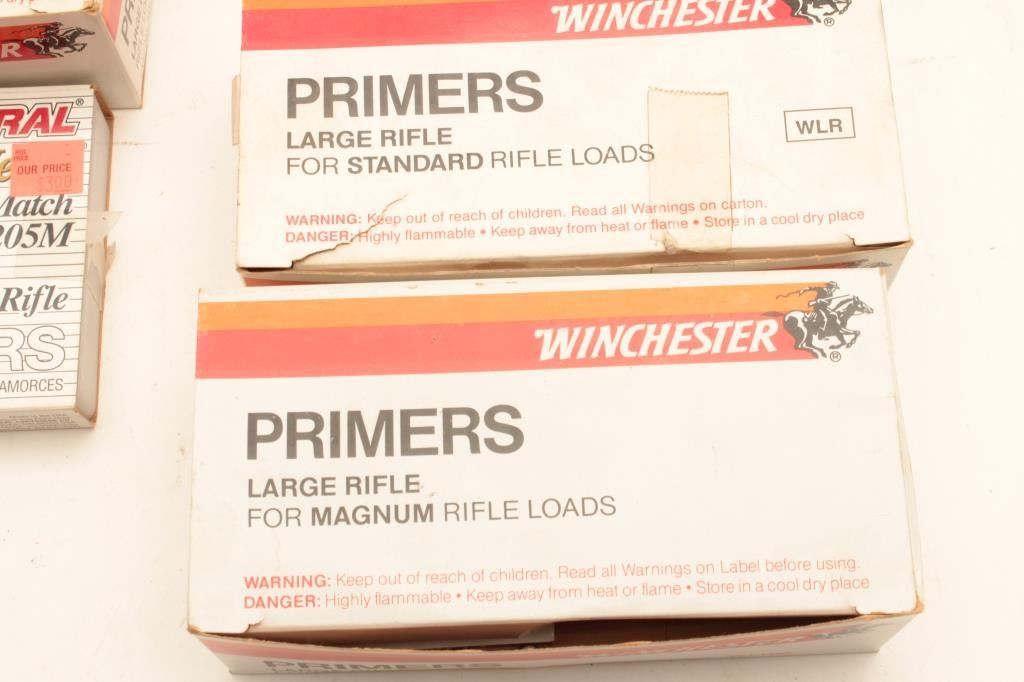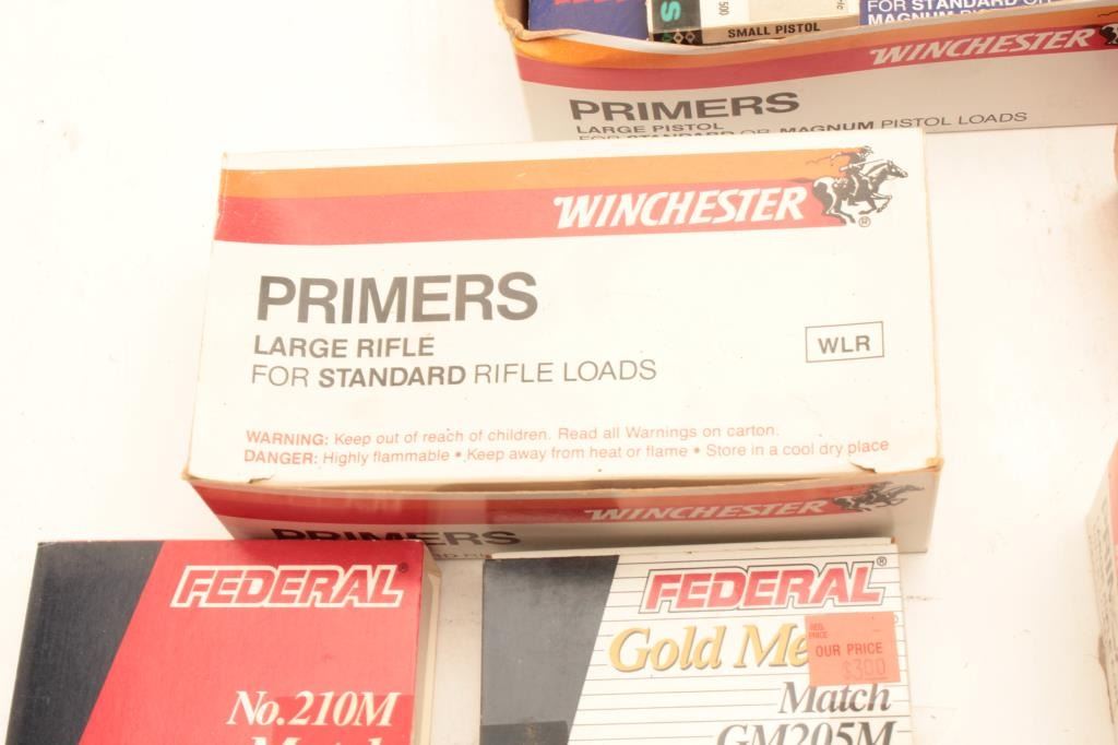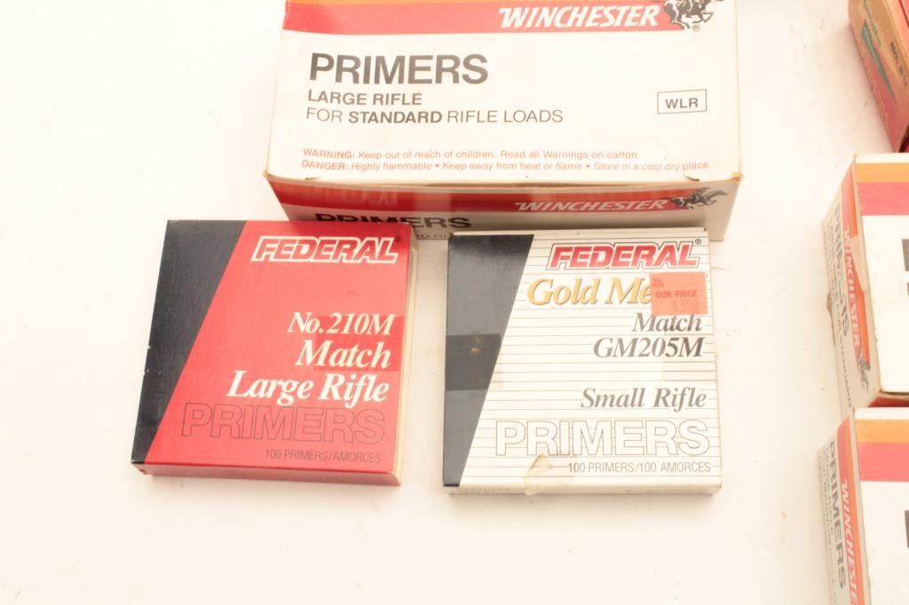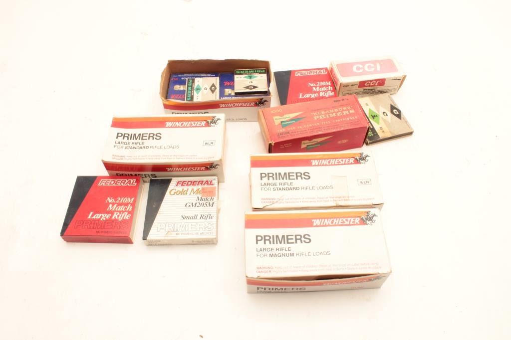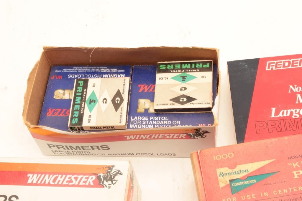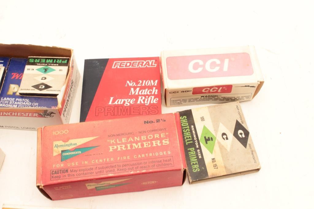 Misc. lot of primers; mixed brands and mixed sizes. Est.: $100-$200.