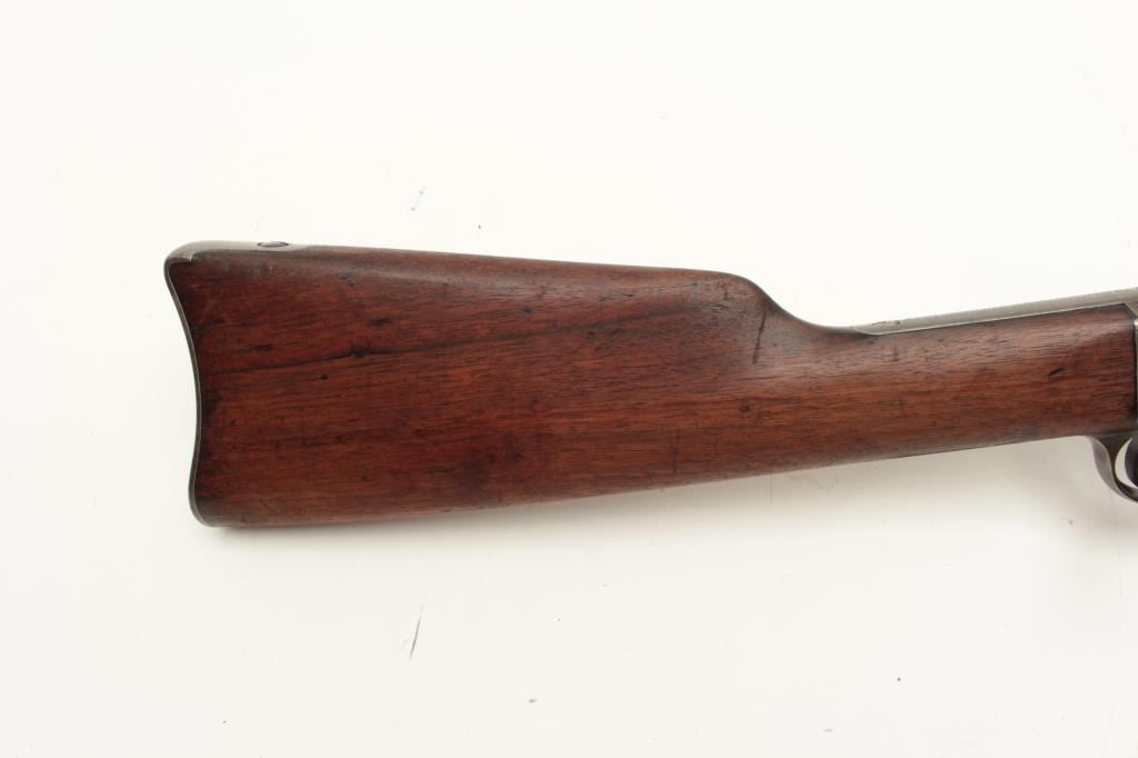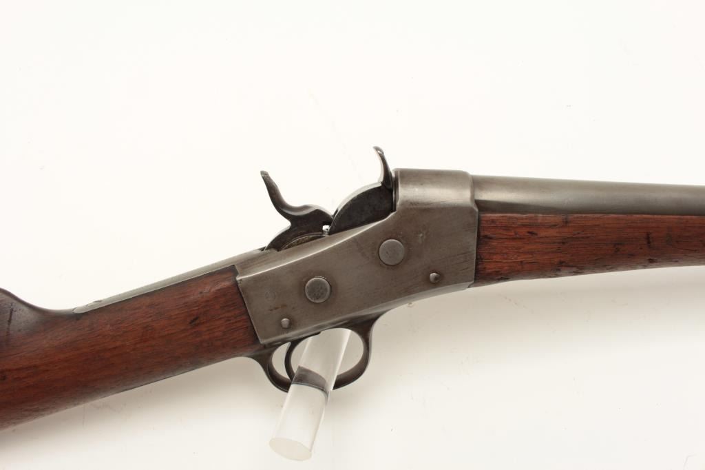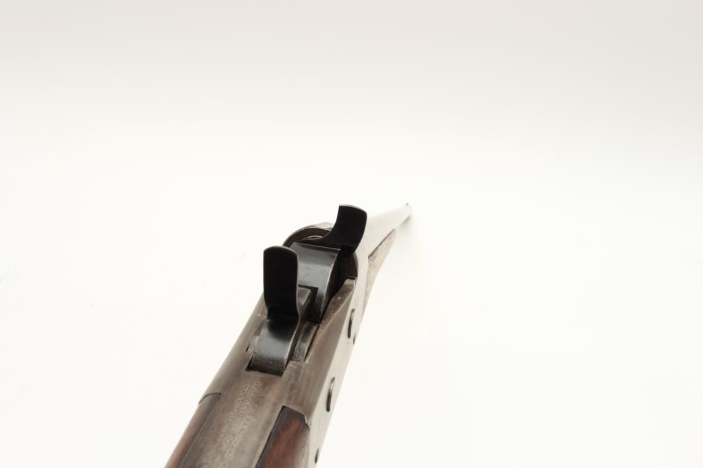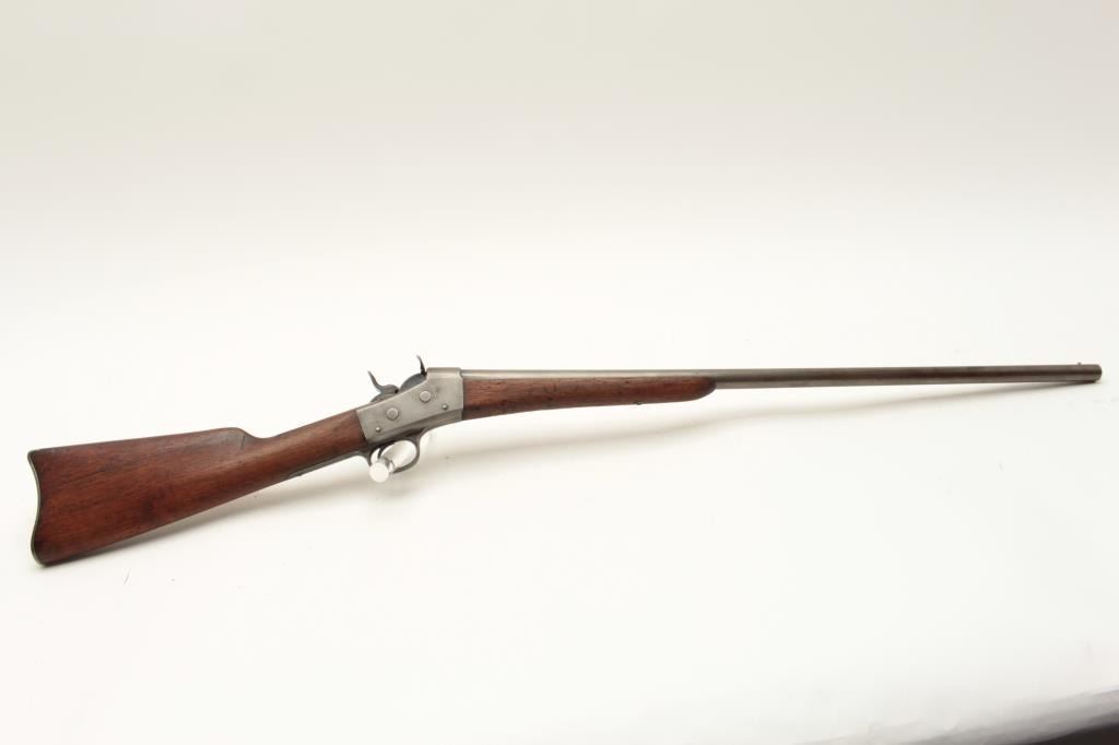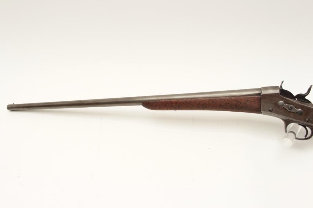 Remington Rolling Block Forager single shot shotgun, 16 gauge, 30” barrel, no visible S/N, in overall good condition with a light grey patina to metal surfaces, crisp action and markings, scattered pitting in bore, good Lot Title wood stocks with some scattered old mars and scratches. (Antique). Est.: $400-$800.