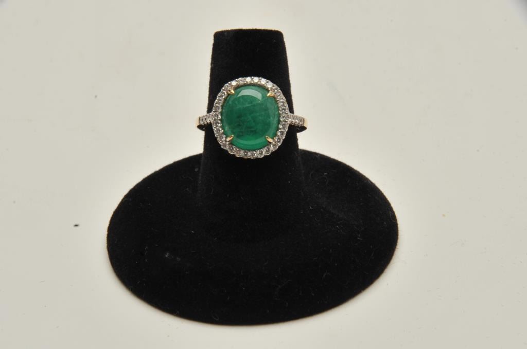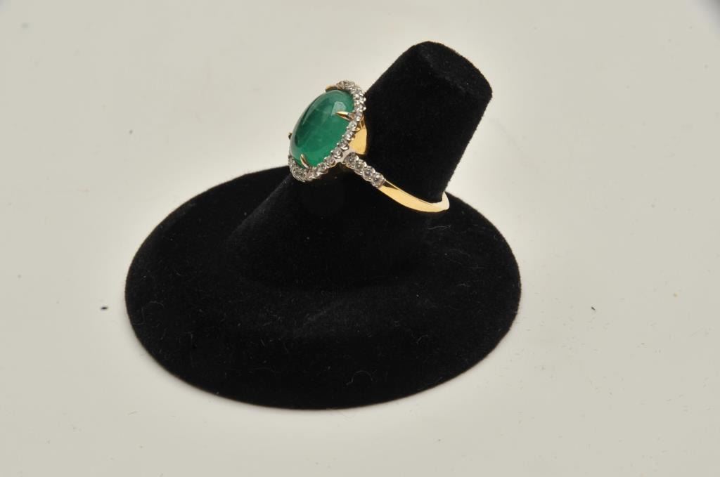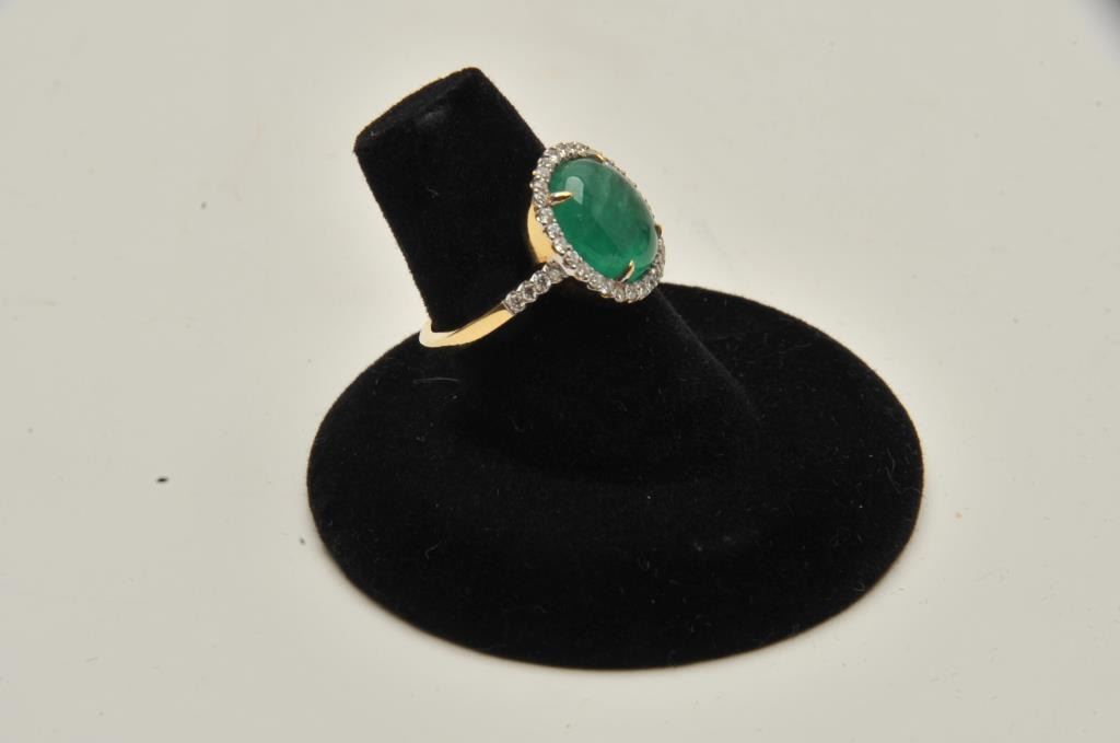 One fine oval jade cabochon set in 18 k yellow gold mounting Est:$1,800-2,000