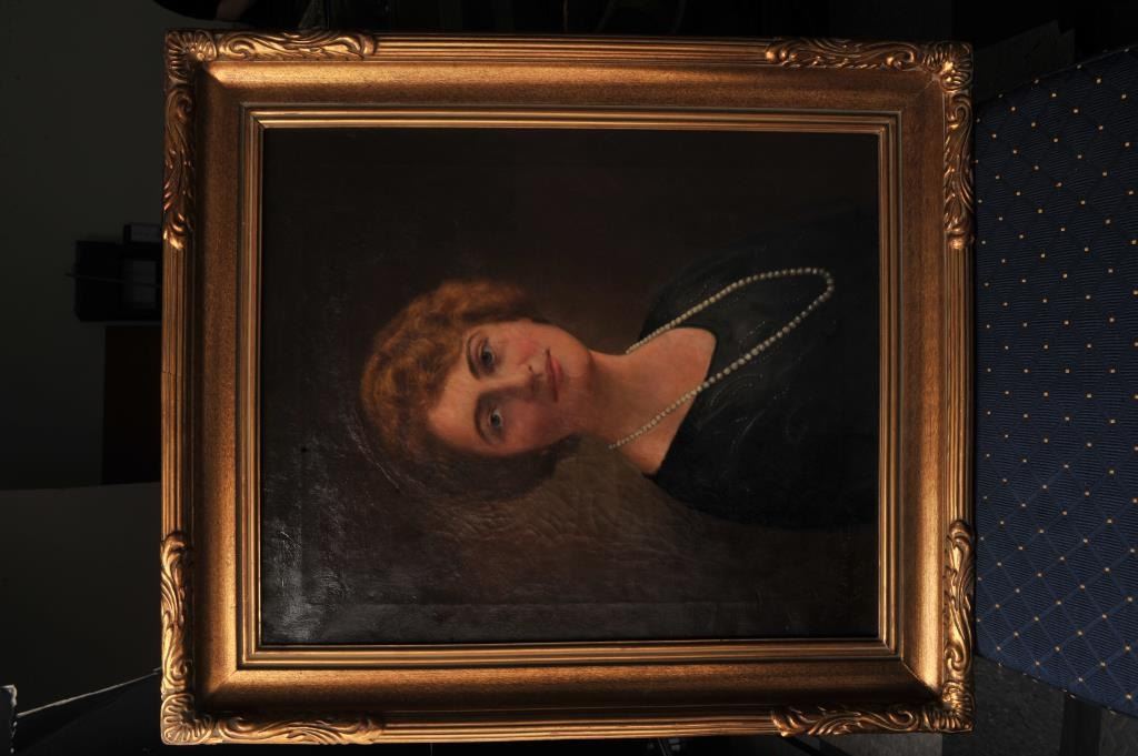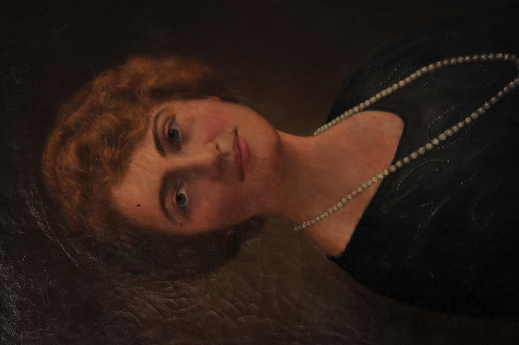 Oil on canvas signed lower left “W. Glernam” of lady with pearl necklace 1923. Professionally and high quality showing restoration. Canvas is loose and cracking. Nice frame. Needs conservation. Est.: Lot Title $175-$350