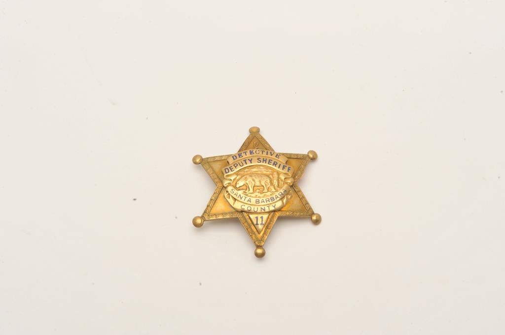 Santa Barbara County CA Deputy Sheriff Detective 6 point star badge (11/hallmark LA Stamp & Staty Co.). Est.: $150-$300.