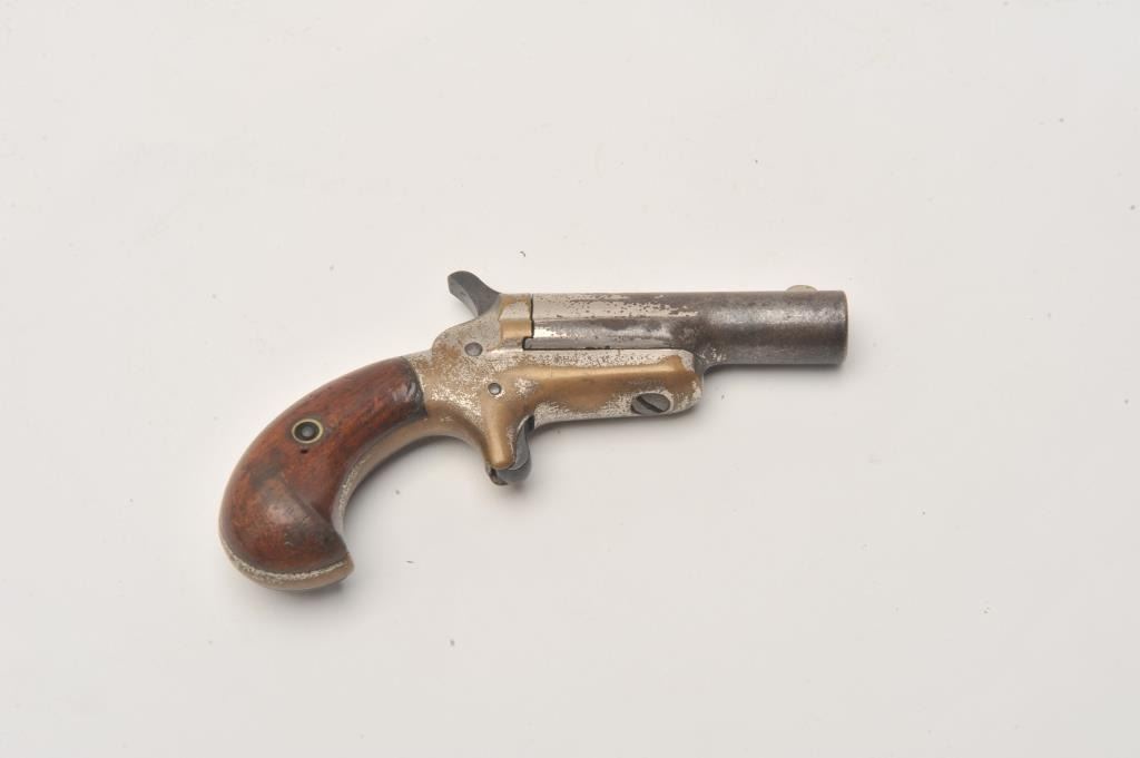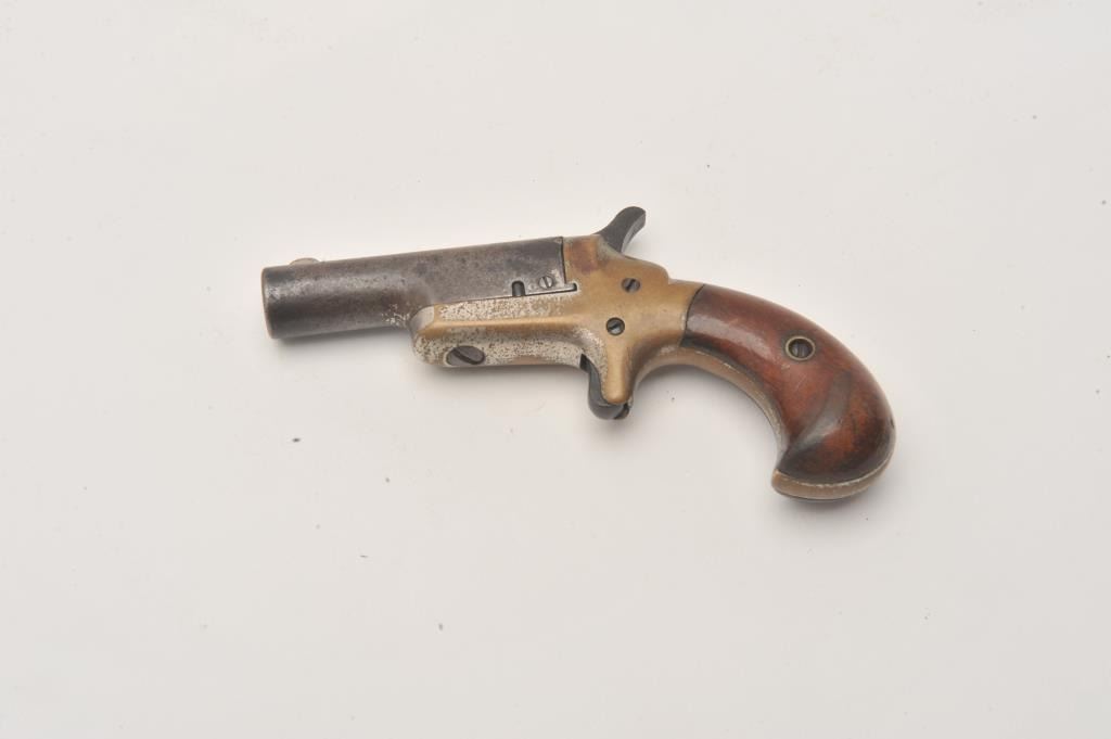 Colt 3rd Model Derringer 41 cal. rimfire, 2 1/2" barrel, nickel finish, in good condition overall, 30-40% nickel remaining, grips show no chips or cracks. (Antique) Est $250-500