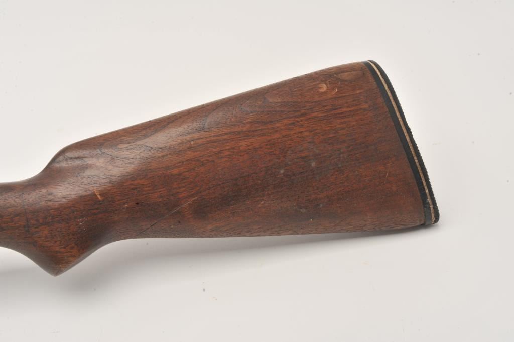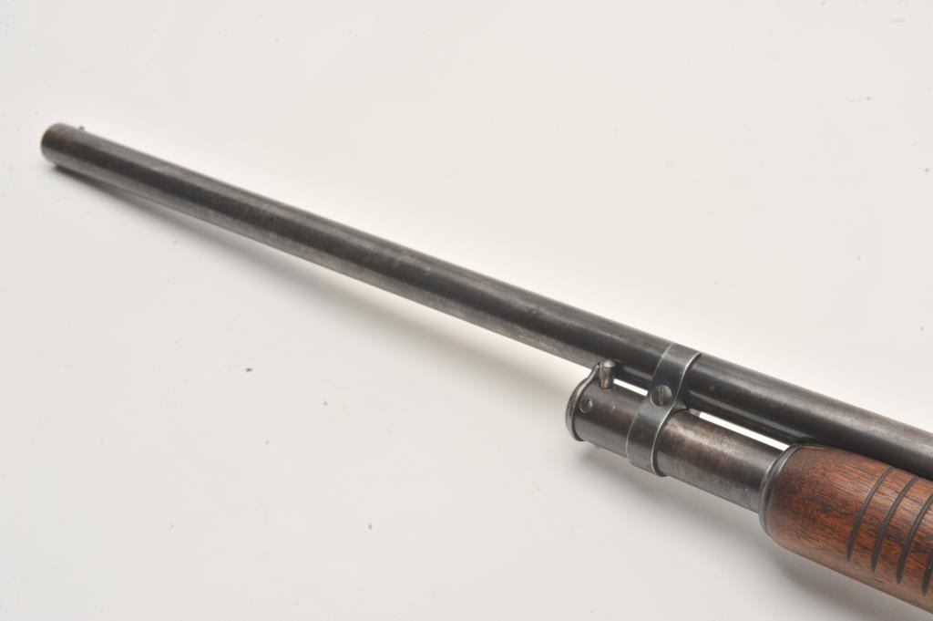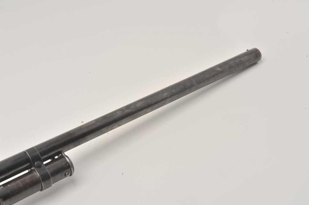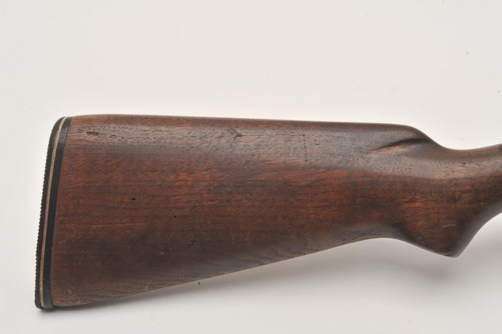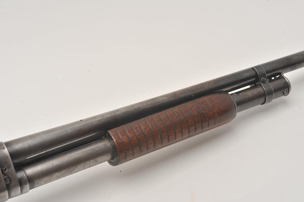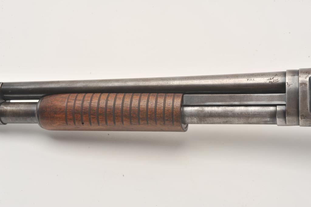 Winchester 97 takedown 12 Ga pump shotgun, #1003711, 30" full choked barrel, rubber Winchester recoil pad. Shotgun is in very good condition overall, approximately half the original finish remains, the stock shows Lot Title some losses behind the trigger guard on the left side. Bore is minty, action is very good, (C&R /PPT) Est $150-300