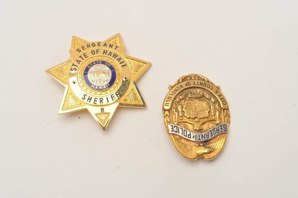 Two badges including a State of Hawaii Sheriff Sergeant 7 point star (8/no hallmark) and a Sergeant of Police City & County of Honolulu badge (no hallmark). Est.: $150-$300.