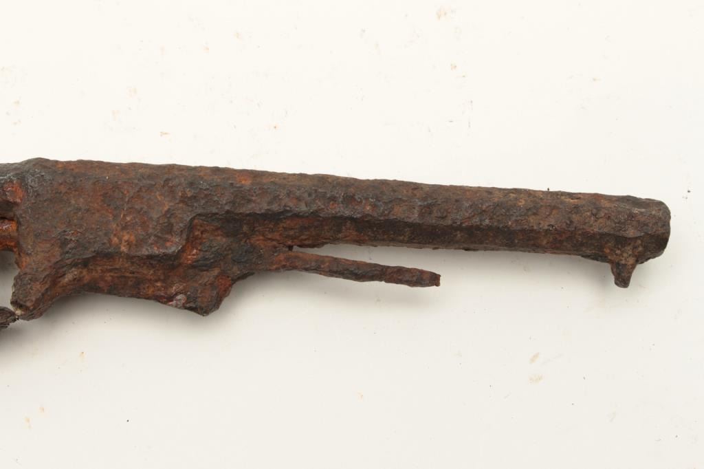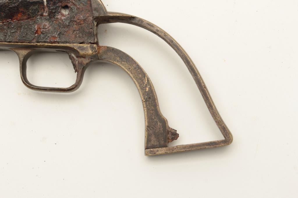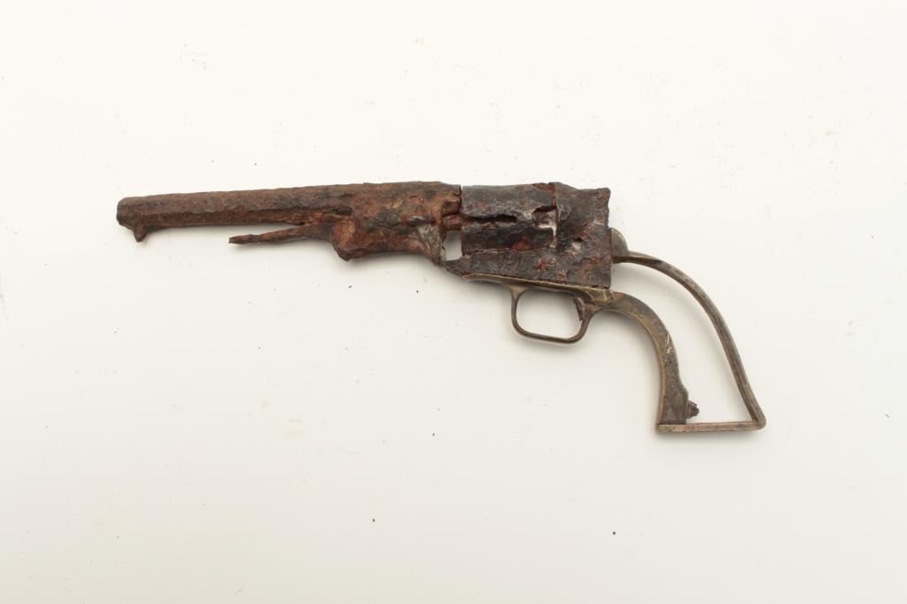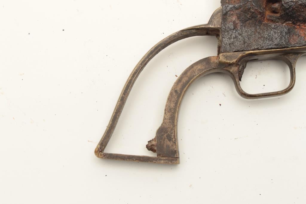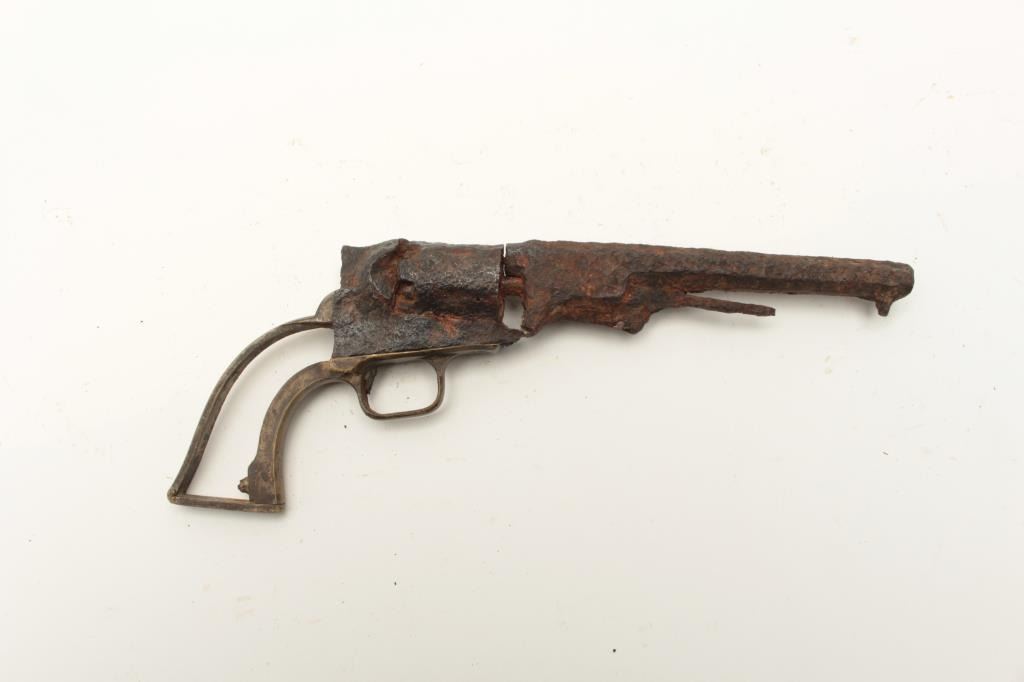 Rusty relic Colt Model 1849 Pocket percussion revolver, S/N 22536; no grips, heavily rusted as if in water for a long period of time. From the collection of John O. Beckwith. Est.: $150-$250.