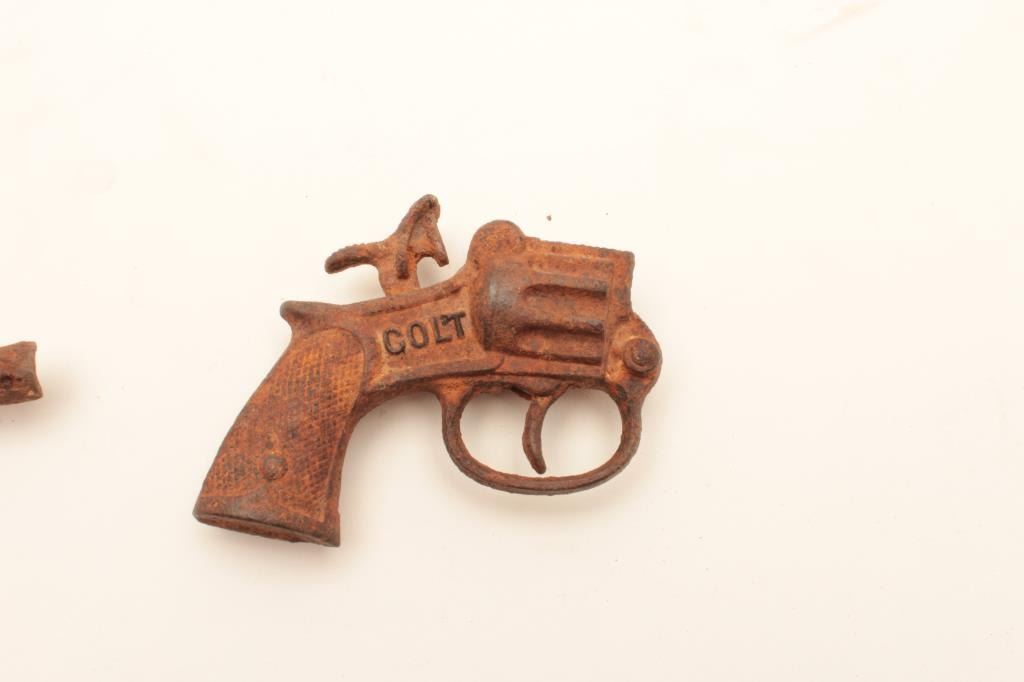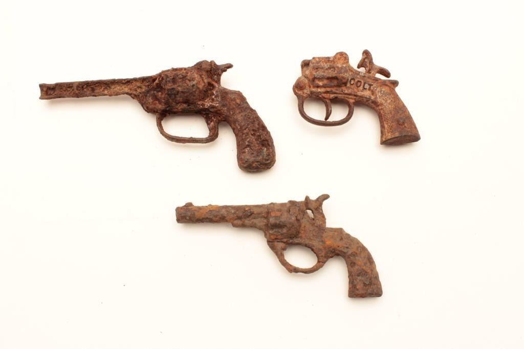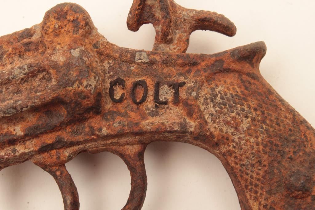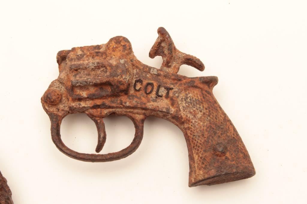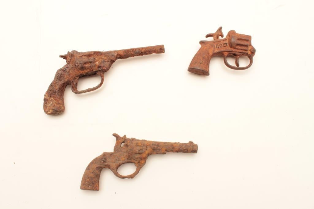 Lot of 3 rusty relic small cap guns including one marked “COLT” (missing barrel). From the collection of John O. Beckwith. Est.: $75-$125.