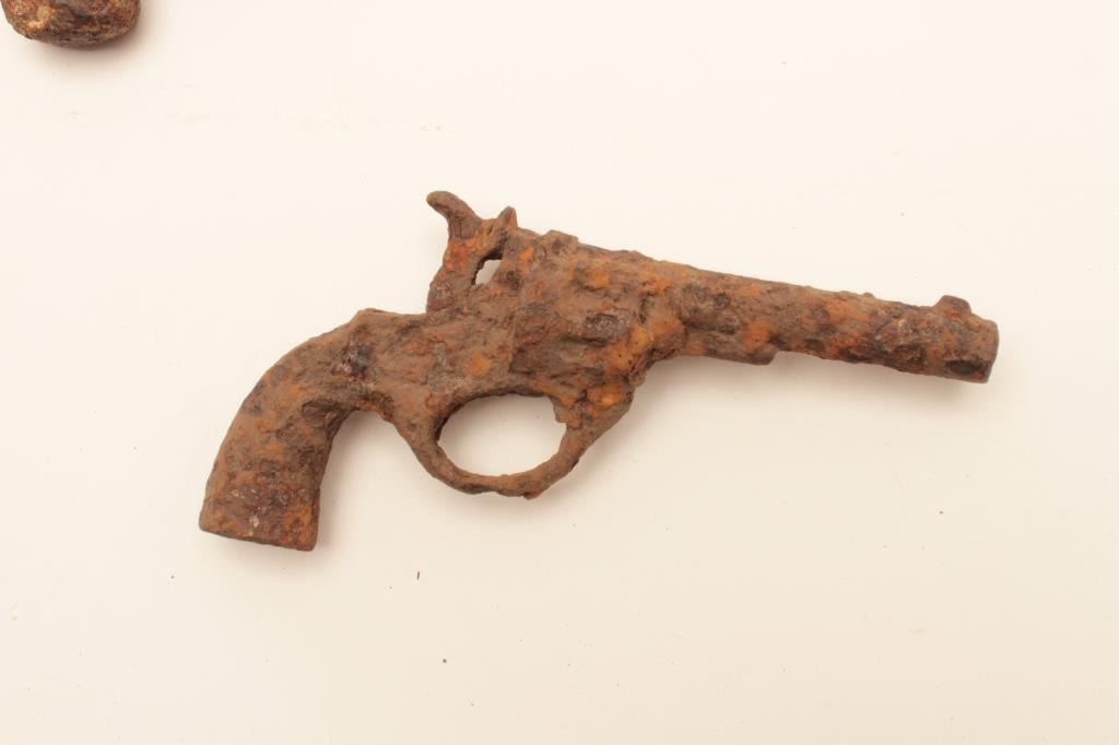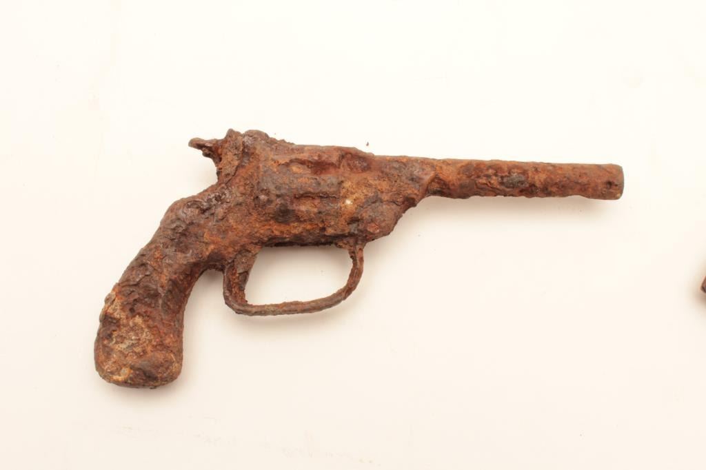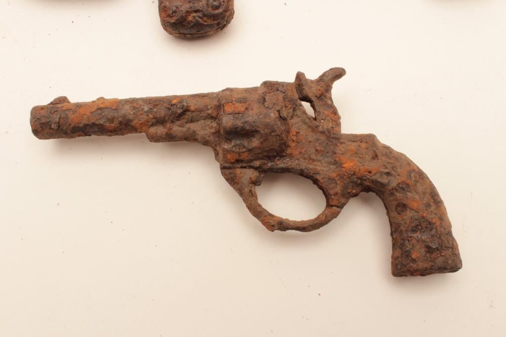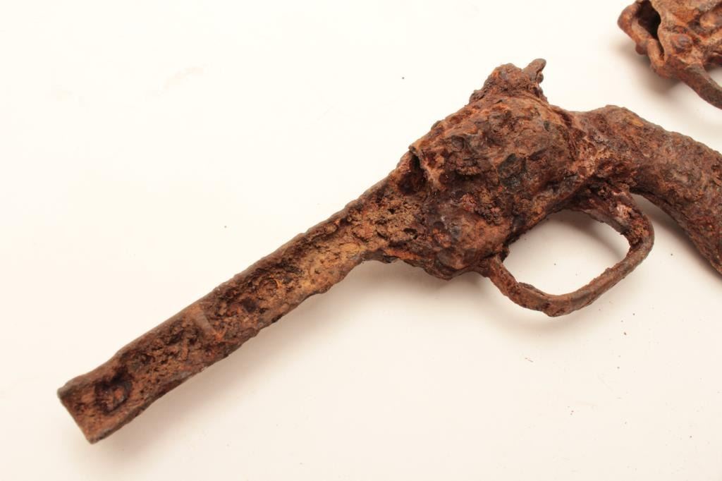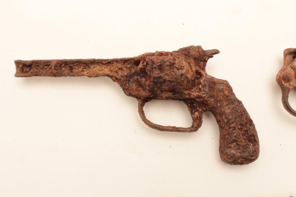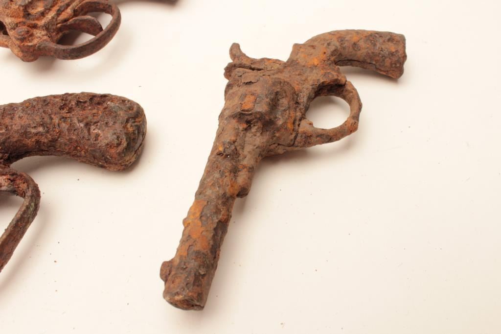 Lot of 3 rusty relic small cap guns including one marked “COLT” (missing barrel). From the collection of John O. Beckwith. Est.: $75-$125.