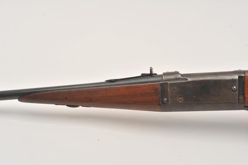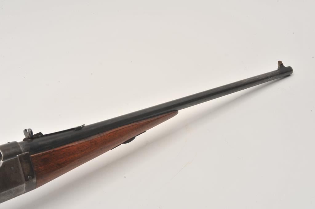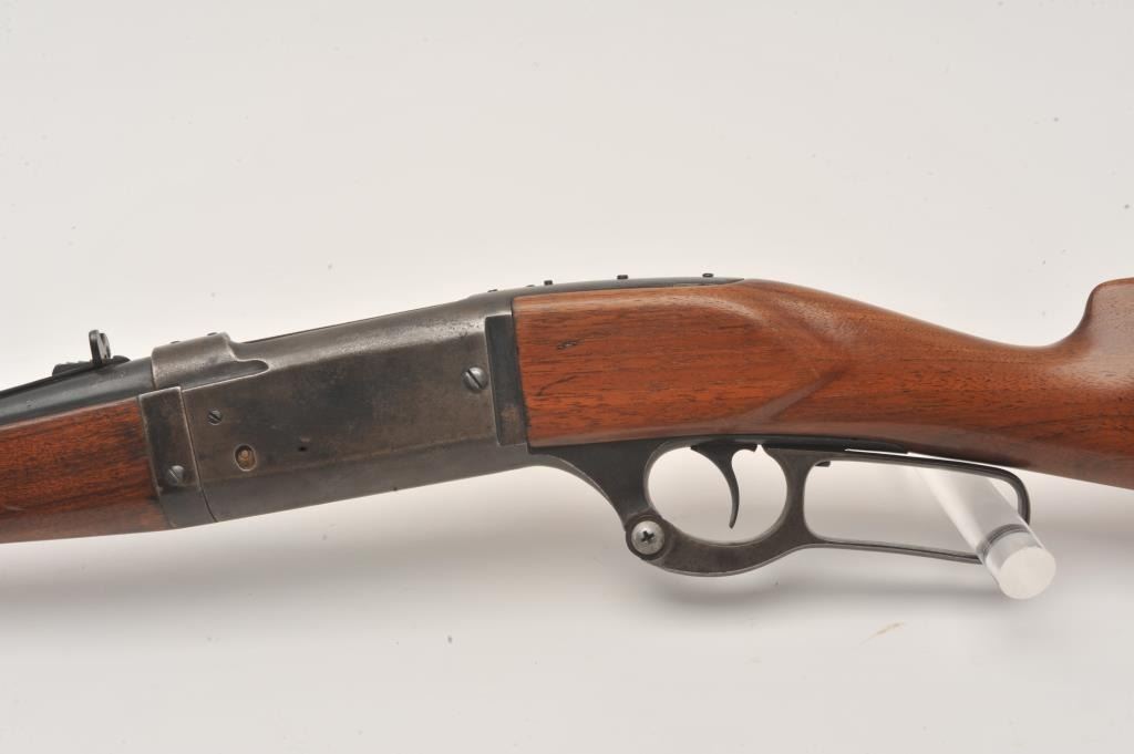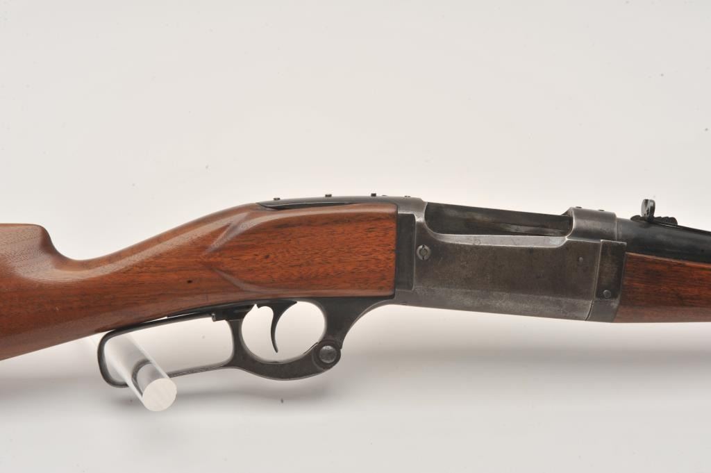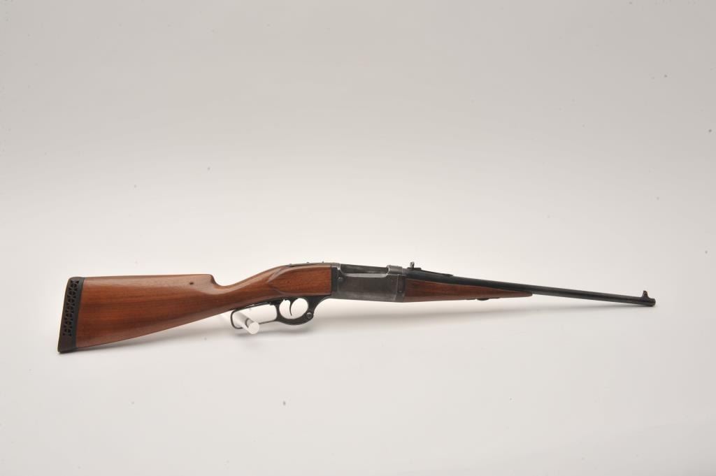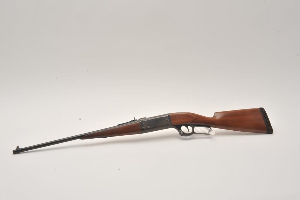 Savage 99, #143466, .22 H.P. cal., 20" barrel, walnut stock with rubber recoil pad. Rifle is in good condition overall, as restored, receiver has been drilled and tapped for tang sight. There is a small loss Lot Title in the stock to the right of the receiver. An early 99 in a desireable caliber. (C&R /PPT) Est. $250-500