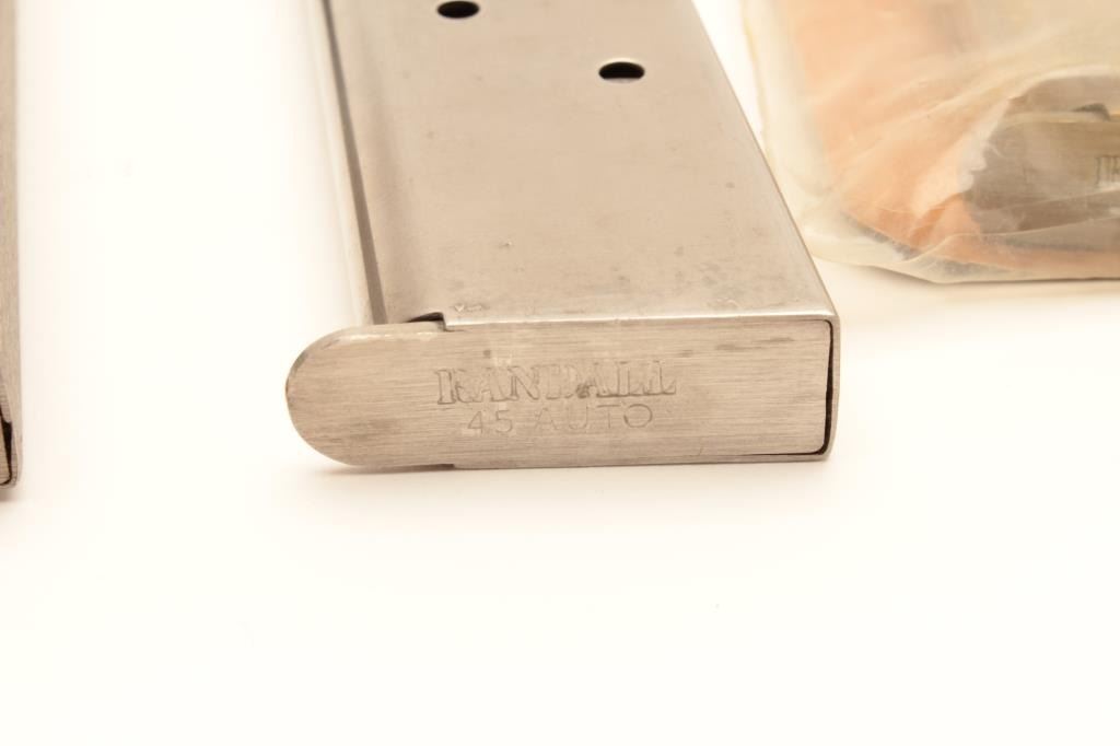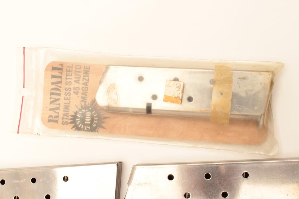 Lot of five Randall stainless steel .45 auto magazines. All five are in very good condition with one still in the original bag. A great lot for the Randall 1911 shooter. Est.: $150-$300.