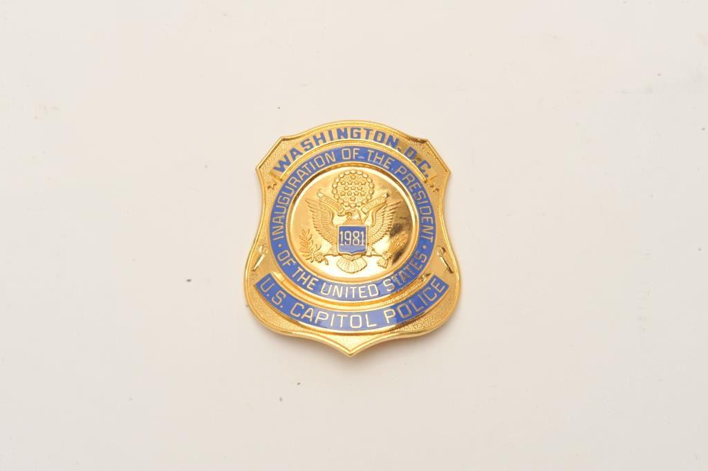 U.S. Capitol Police Commemorative Inauguration of the President, 1981 badge (hallmark Blackinton). Est.: $150-$300.