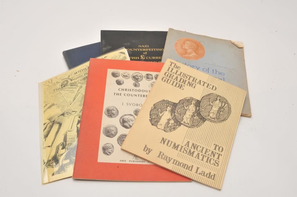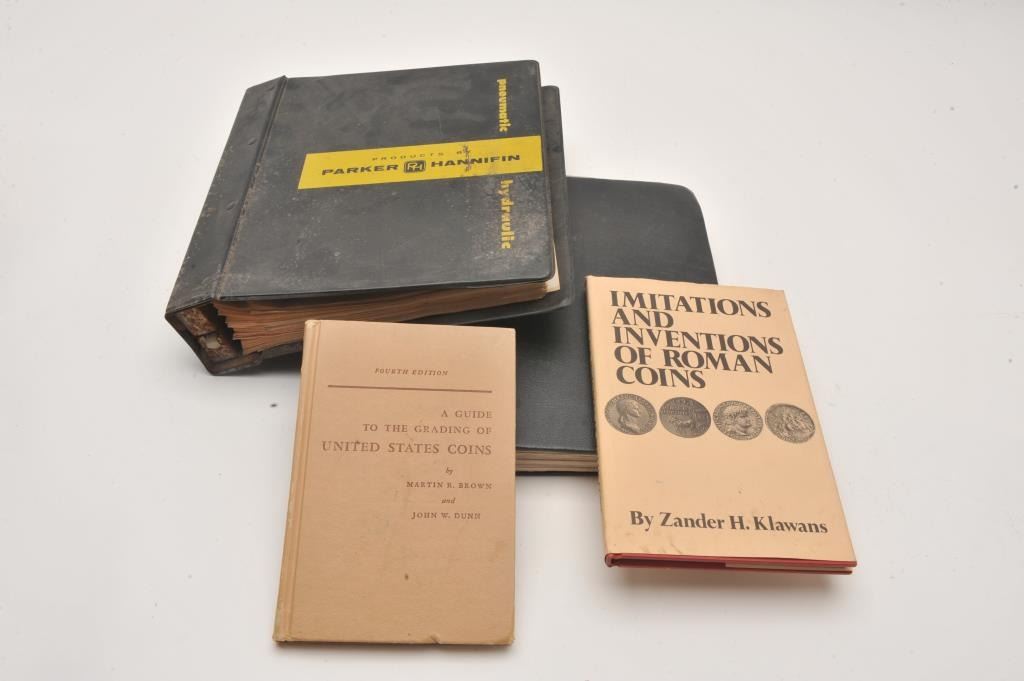 Research lot of folders, books and magazine illustrations used by Dennis Tupper of J.S.D. coins to identify and research ancient coins. 20 plus items. An entire library on subject. Various conditions. Est.: $200-$400