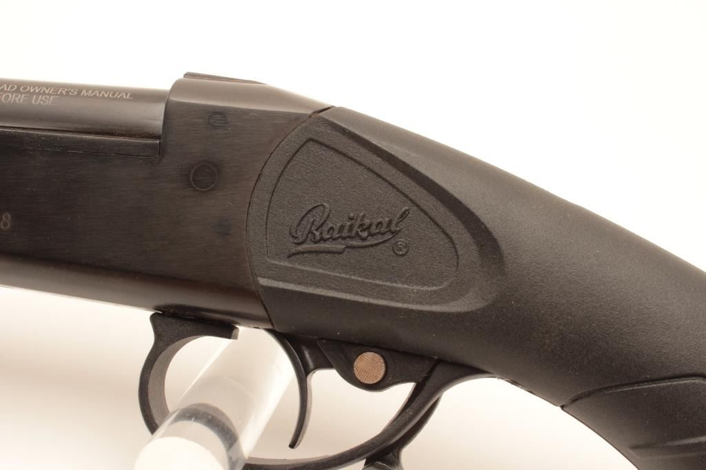 Russian Baikal Model MP 18 single shot shotgun, .410 caliber, Serial #12032695B. The shotgun is in very good overall condition with a 26” barrel. The metal surfaces retain the majority of their blue finish with Lot Title only handling marks. The synthetic stocks are in very good condition and end with a rubber recoil pad providing a 14 ¾” LOP. The bore is good, the action crisp and markings are sharp. Est.: $60-$120. (Modern).