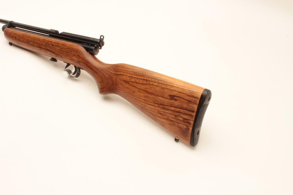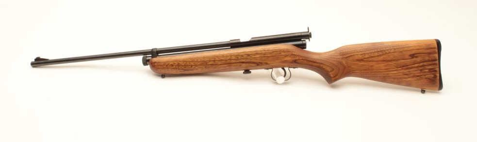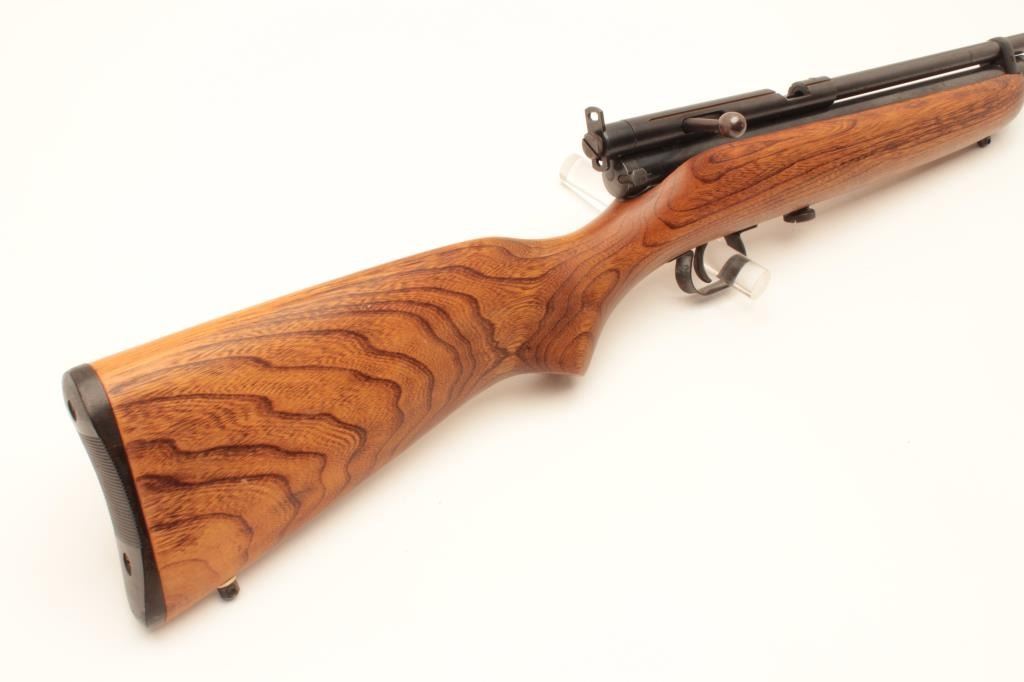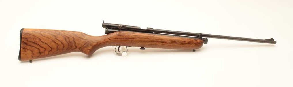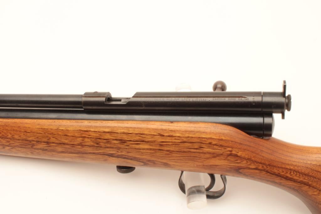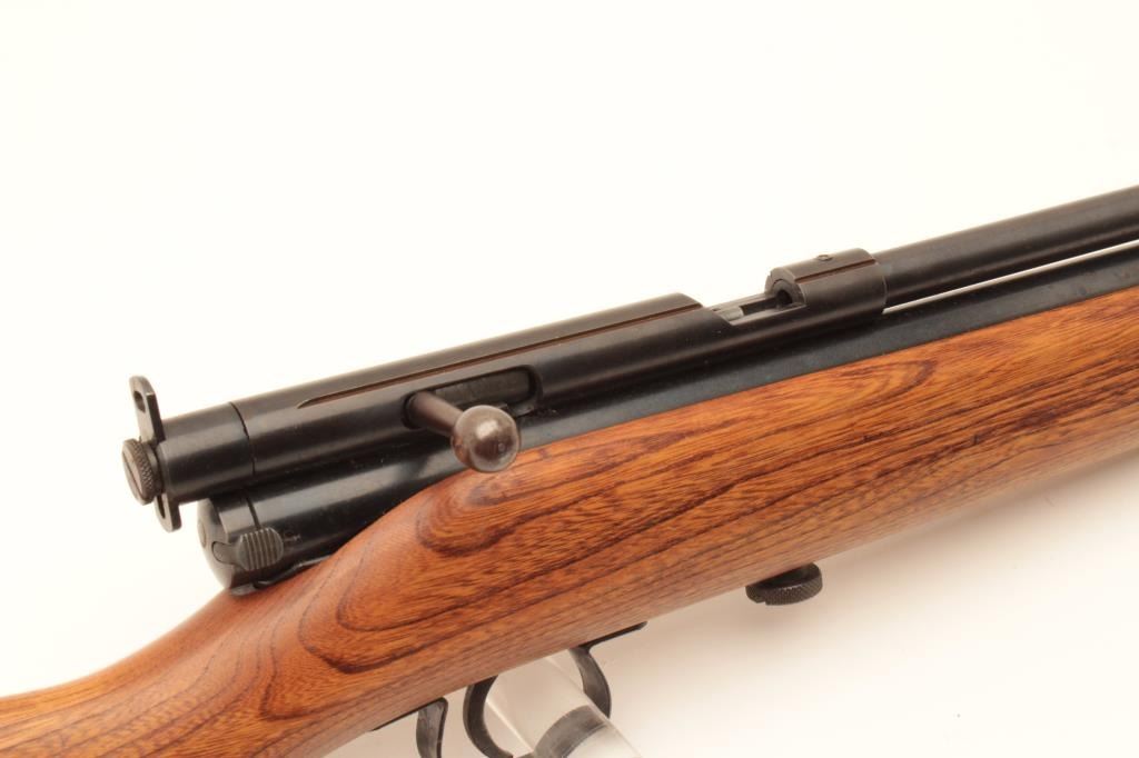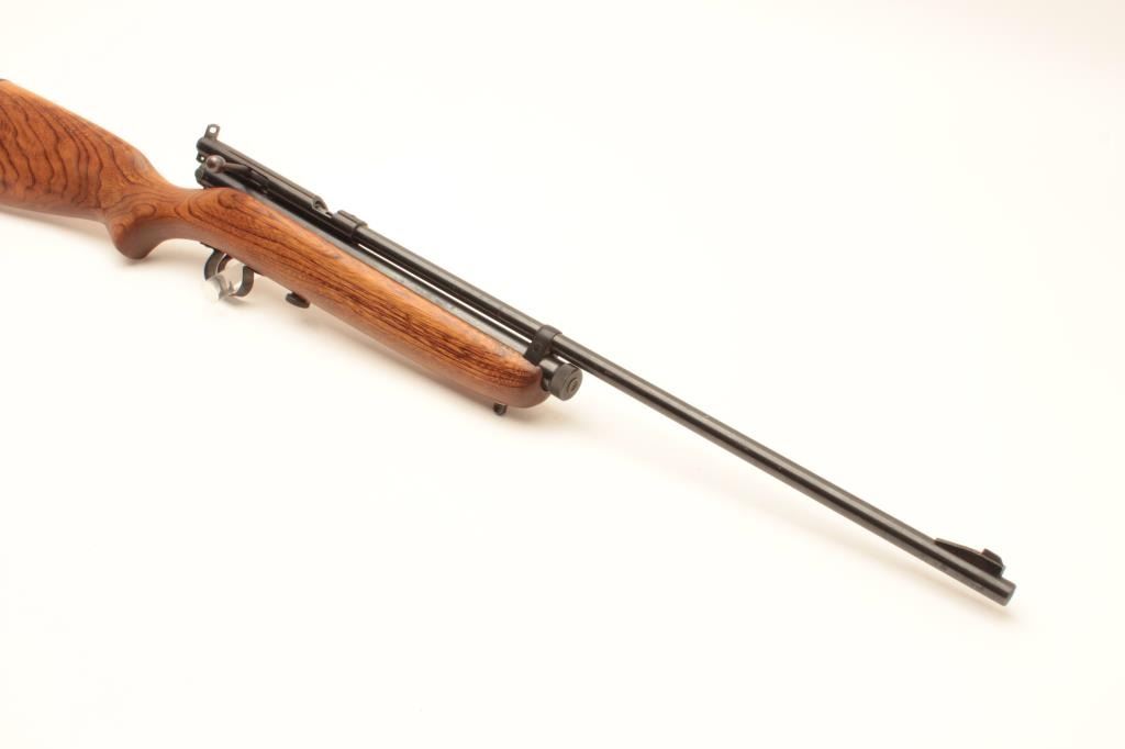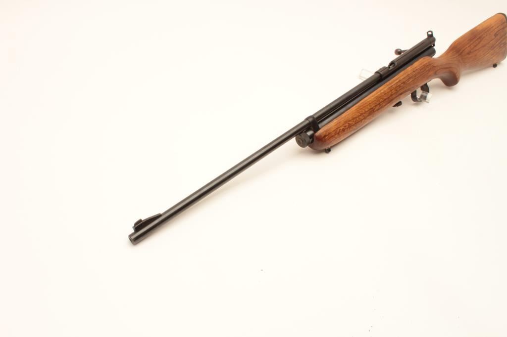 Crosman 160 Pellgun single shot air rifle, .22 caliber, Serial # NSNV. The rifle is in good overall condition with a 21” barrel. The metal surfaces retain the majority of their blue finish while the smooth wood stock Lot Title is in good condition as well. Est.: $35-$70.