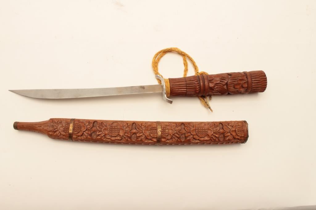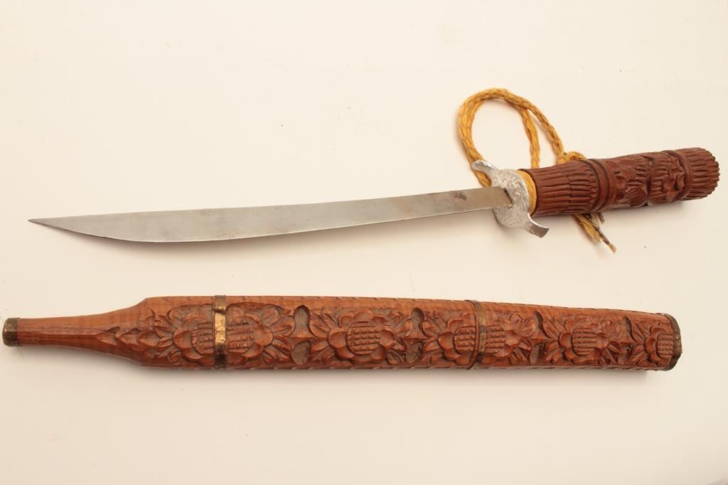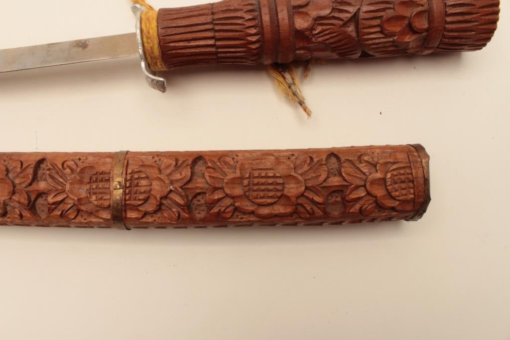 Southeast Asian sword with carved scabbard measuring 25” overall. Vietnam bring back. Est.: $35-$70