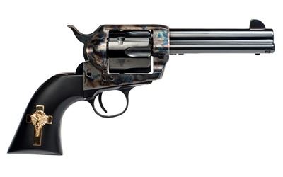 Cimarron, Holy Smoker, Revolver, Single Action, 45LC, 4.75" Barrel, Steel Frame, Blue Finish, 6Rd, Fixed Sights, Gold Cross Black Grip