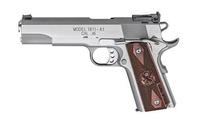 Springfield, Range Officer 1911 Pistol, 45 ACP, 5" Match Grade Barrel, Stainless Finish, Diamond Cocobolo Grips, Fiber Optic Front and Fully Adjustable Rear Sights, 7Rd, 2 Magazines