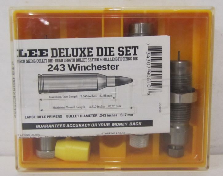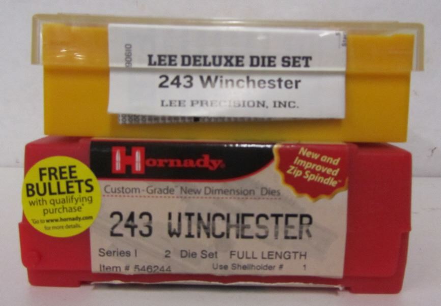 LEE DELUXE DIE SET FOR 243 WINCHESTER, HORNADY CUSTOM-GRADE DIE SET FOR 243 WINCHESTER.