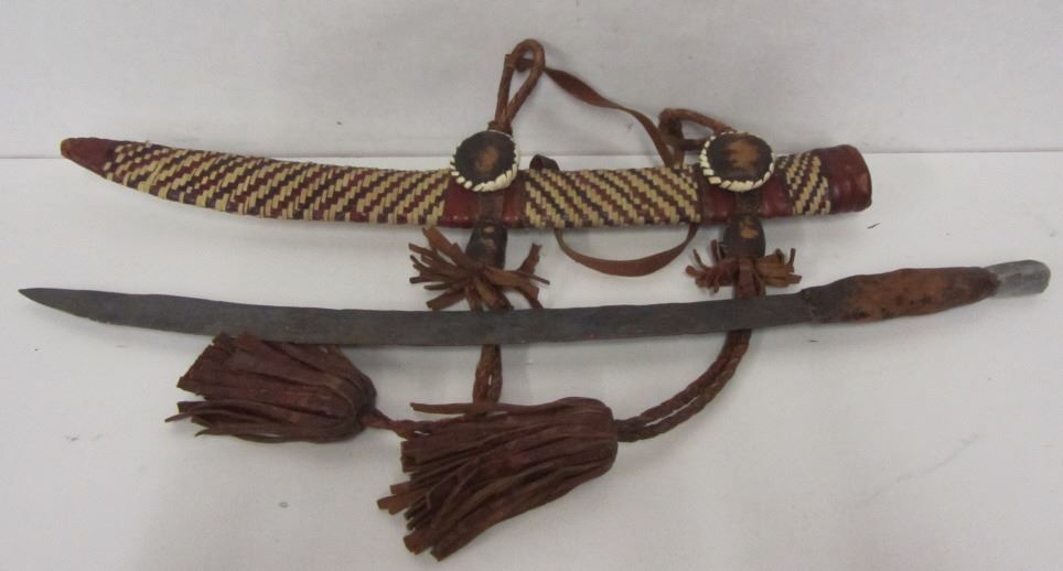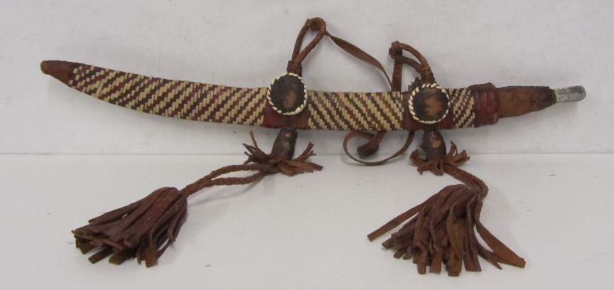 Lot 67 CEREMONIAL DAGGER WITH WICKER AND LEATHER SHEATH