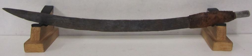 CEREMONIAL DAGGER WITH WICKER WRAPPED LEATHER SHEATH AND LEATHER WRAPPED HANDLE. HAND FORGED.