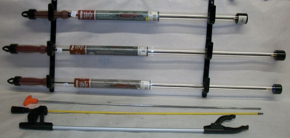 TIPTON CARBON FIBER: 26 INCH 27-45 CAL, 36 INCH 22 TO 26 CAL, 36 INCH 27-45 CAL. HOPPES ALUMINUM ROD, PARKER HALE FIBERGALL ROD AND A GRABBER TOOL.