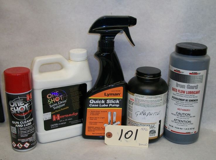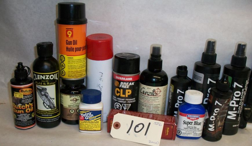 IRON GUARD LUBRICANT, GRAPHITE, LYMAN QUICK SLICK, ONE SHOT SOLUTION, M PRO 7, HOPPES GUN OIL, GUNZILLA, SAFARILAND LUBE, SUPER BLUE, BUTCHS OIL, GUN SLICK CLEANING KIT, BRUSHES AND SWABS, PATCHES. MUST PICK UP, WILL NOT