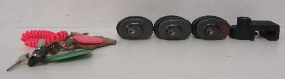 BELL 3-9X40 RIFLE SCOPE AND FOUR TRIGGER LOCKS WITH KEYS.