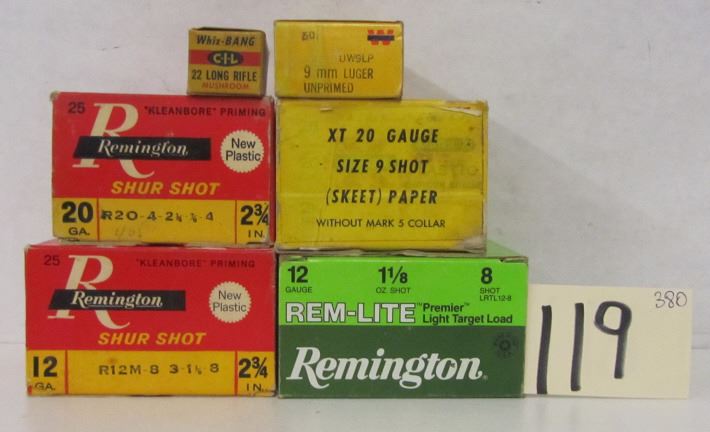Lot 119 BOX LOT VINTAGE REMINGTON & WINCHESTER SHOT SHELLS