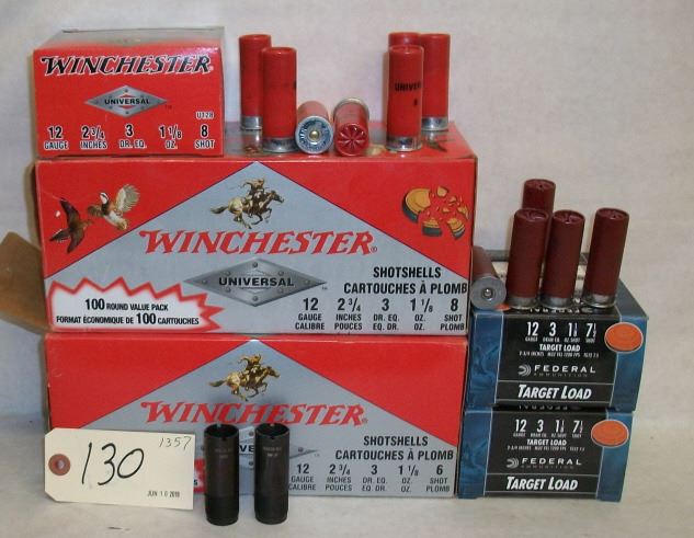 100 RNDS WINCHESTER 12 GA. 2 3/4" # 6, 72 RNDS 12 GA. 2 3/4" # 8, 40 RNDS FEDERAL 12 GA. 2 3/4" # 7 1/2", TWO INVECTOR PLUS 12 GA. CHOKE TUBES MOD. & IMP. CYL.