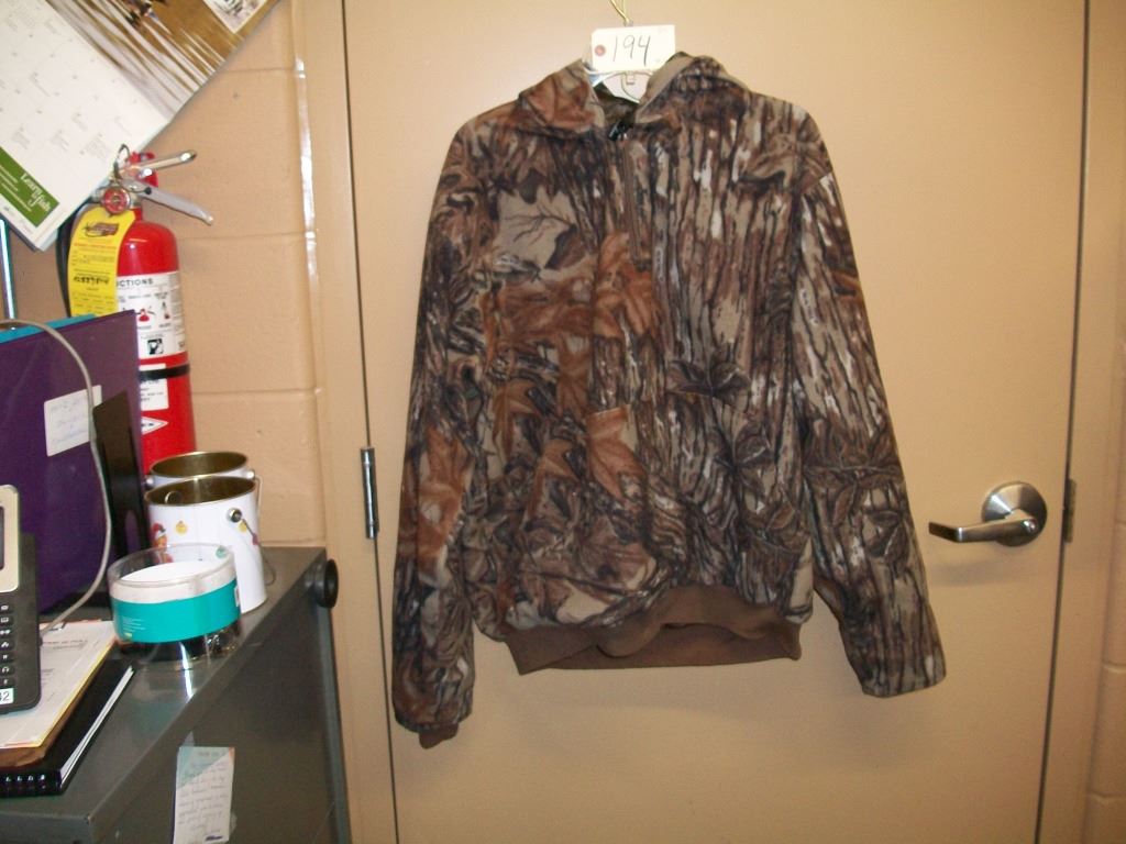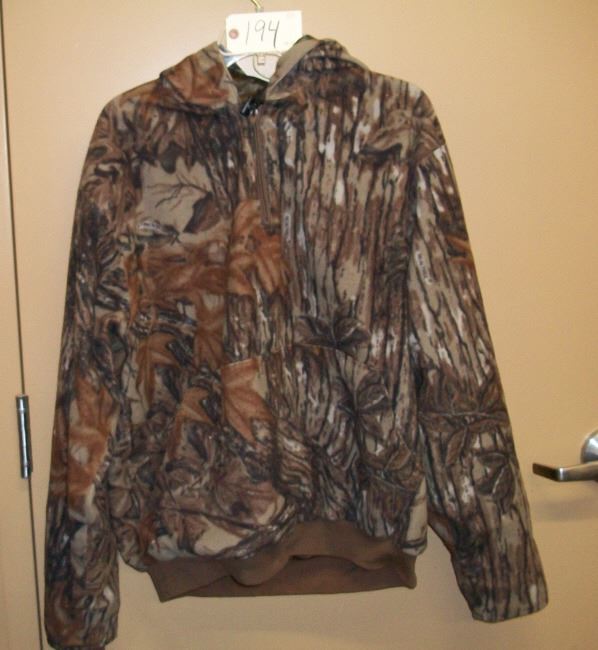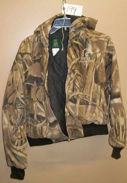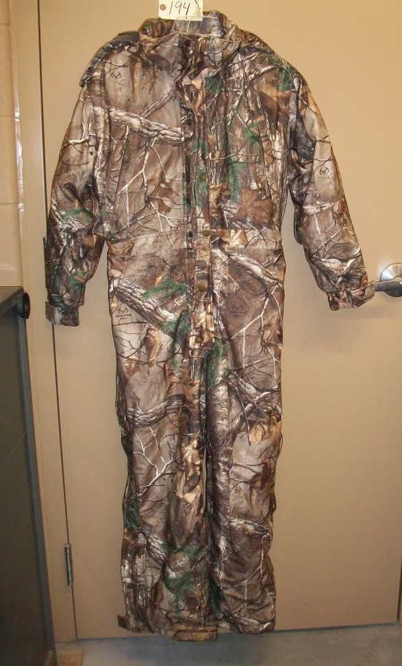 ALL PREVIOUSLY WORN, NORTH 49 SKI PANTS SIZE MT/ML, CABELAS YOUTH SIZE LARGE CAMO COVERALLS, DUCKS UNLIMITED YOUTH SIZE L WATERFOWL CAMO COAT ZIPPER NOT WORKING PROPERLY, MENS XL CAMO FLEECE PULL OVER, PAIR