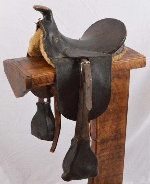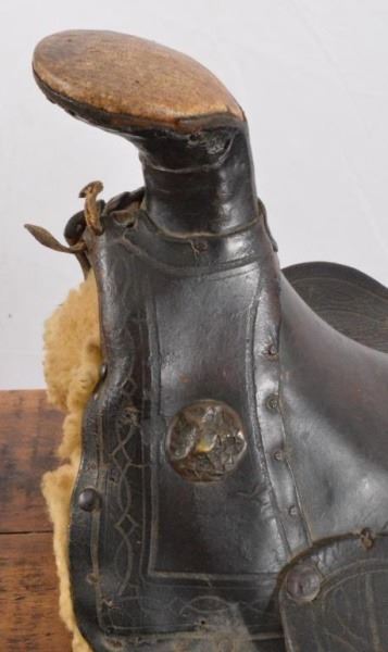 Lot 32 Early Folk Art Texas Star Carved Saddle
