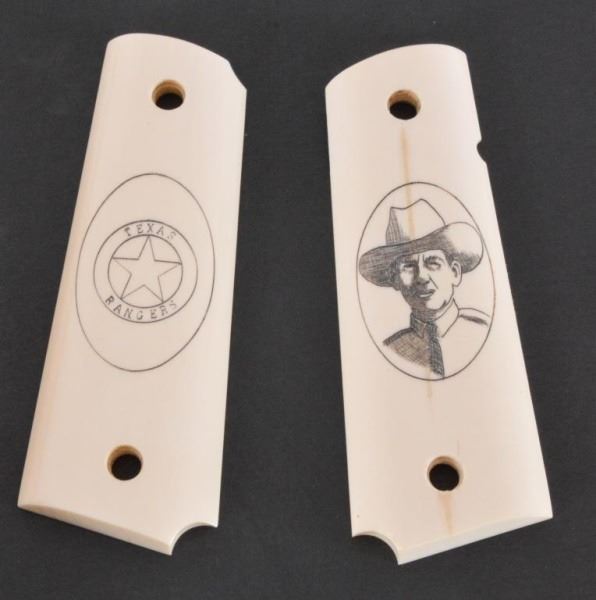 Signed book & scarce LWG commemorative Colt 1911 grips. From a very limited commemorative set .