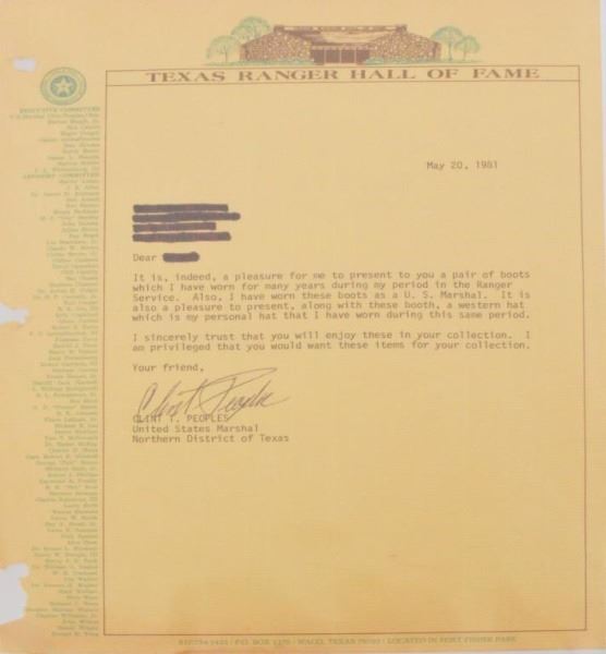 Lot 55 Texas Ranger Clint Peoples Boots & Hat