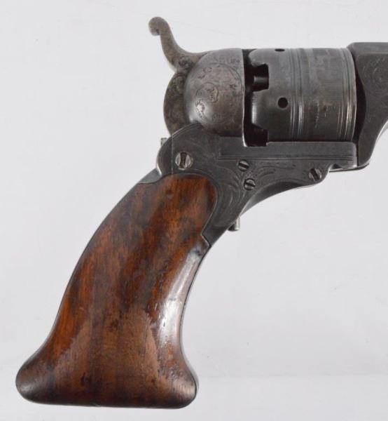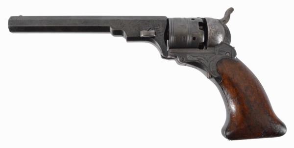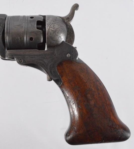 Published in the book of Colt Factory engraving. All original wooden case, with accessories. A fine example of a RARE gun. S/N 607