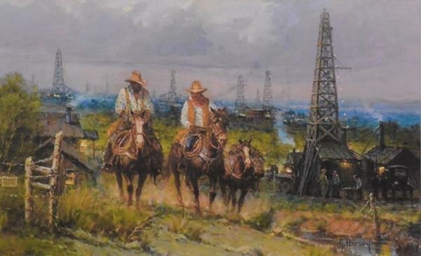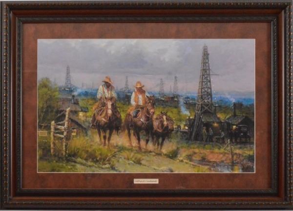 Lot 232 G. Harvey "Oil Patch Cowhands" Print